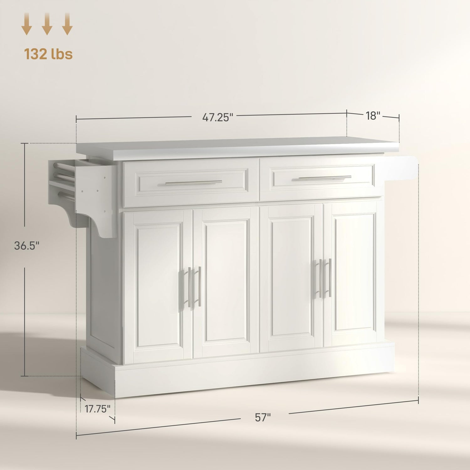 - All-in-All Organization: Elevate your kitchen game with the built-in spice rack, towel rack, knife rack, and stainless steel handle of this island for kitchen with storage. It keeps your kitchen essentials within arm's reach, streamlining your cooking process and fueling your culinary creativity.
