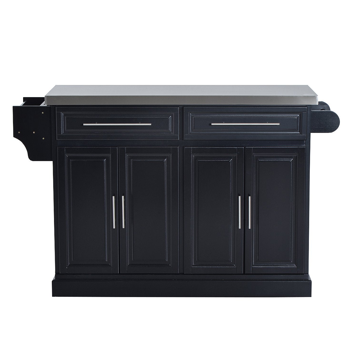 Add to your kitchen with our HomCom cart island cabinet, and your kitchen will have more space for storage. Designed with functionality, our product will make your life easier. It features stainless steel top allowing for placing fruits, food and kitchen essentials. The drawers and cabinets can be used to put dishes, basins, etc. With compact design and great storage capabilities, it will give you perfect usage experience.