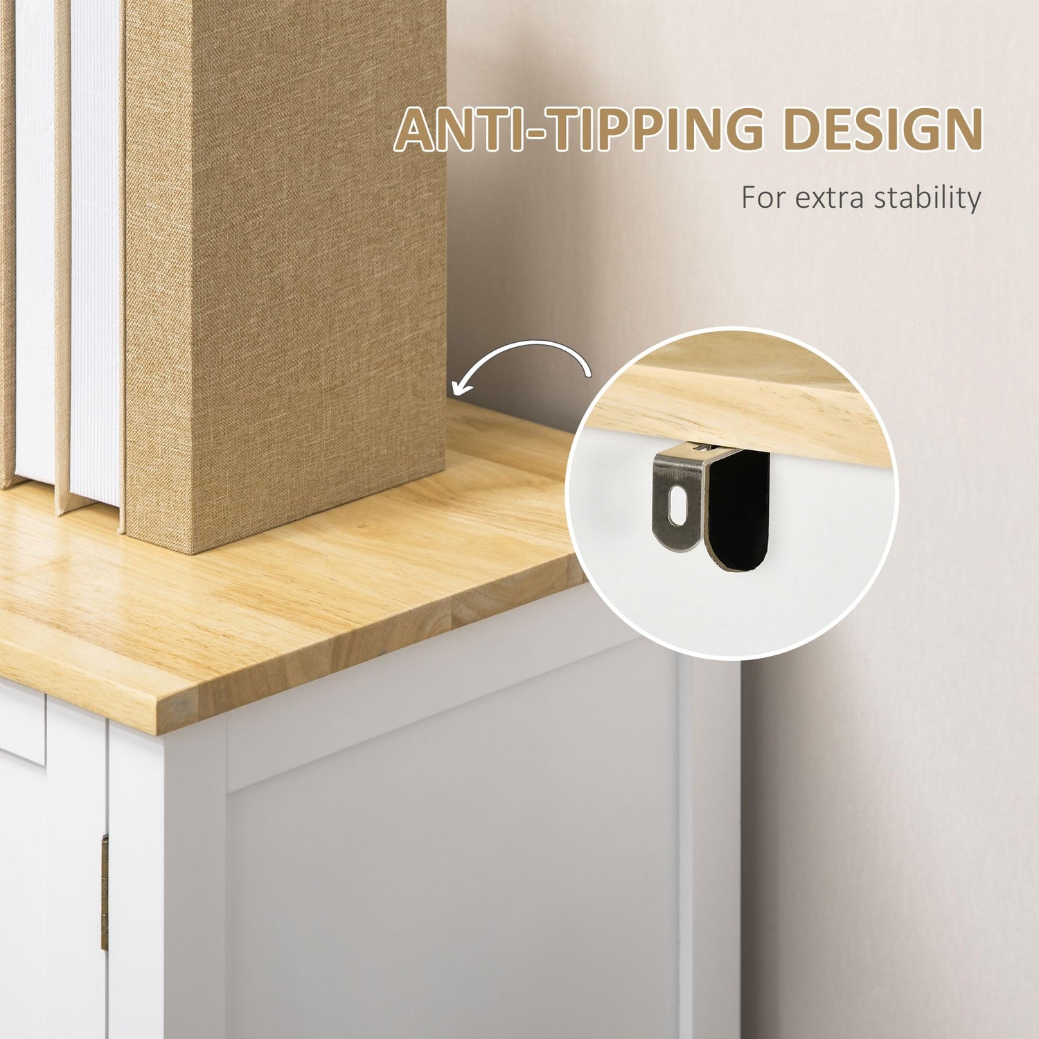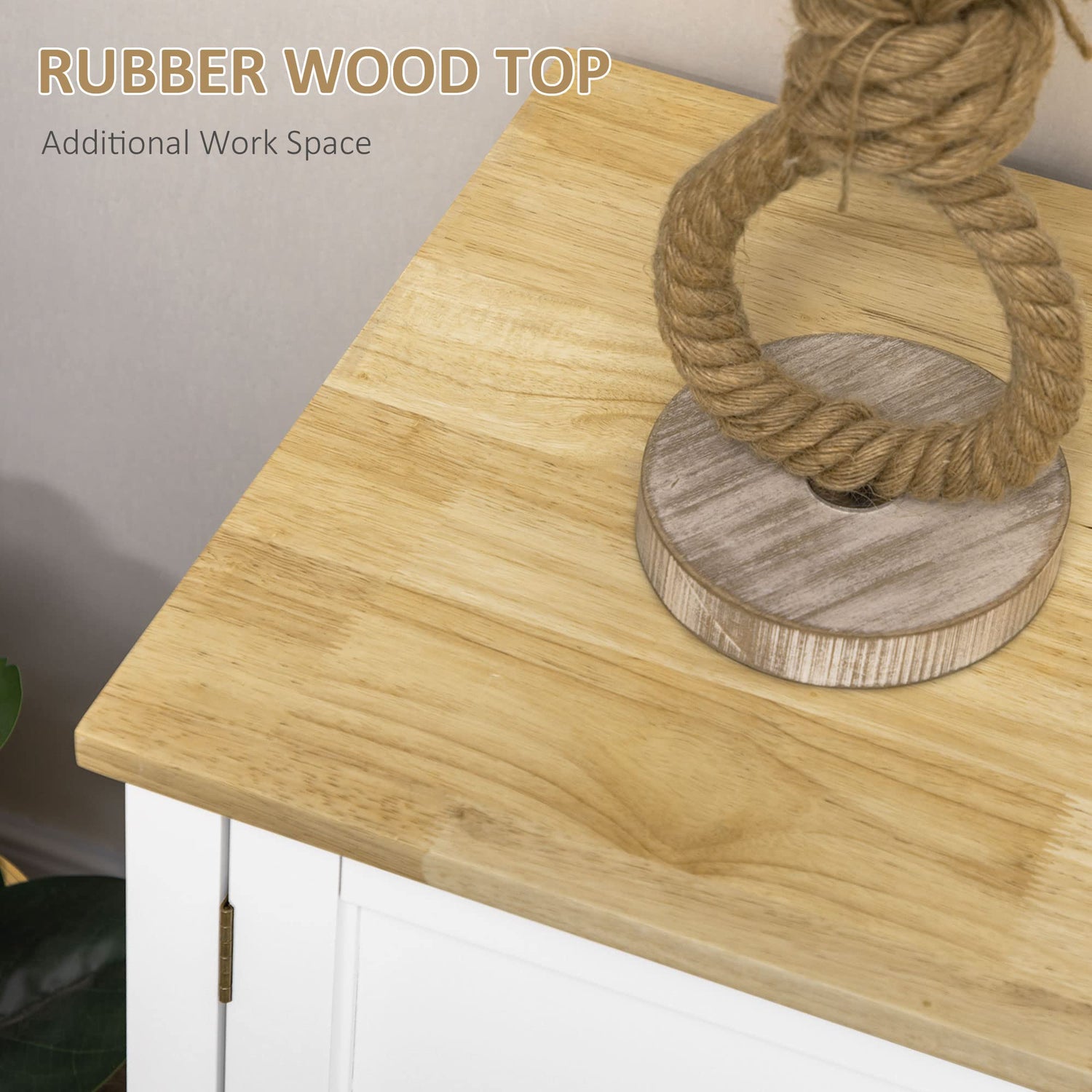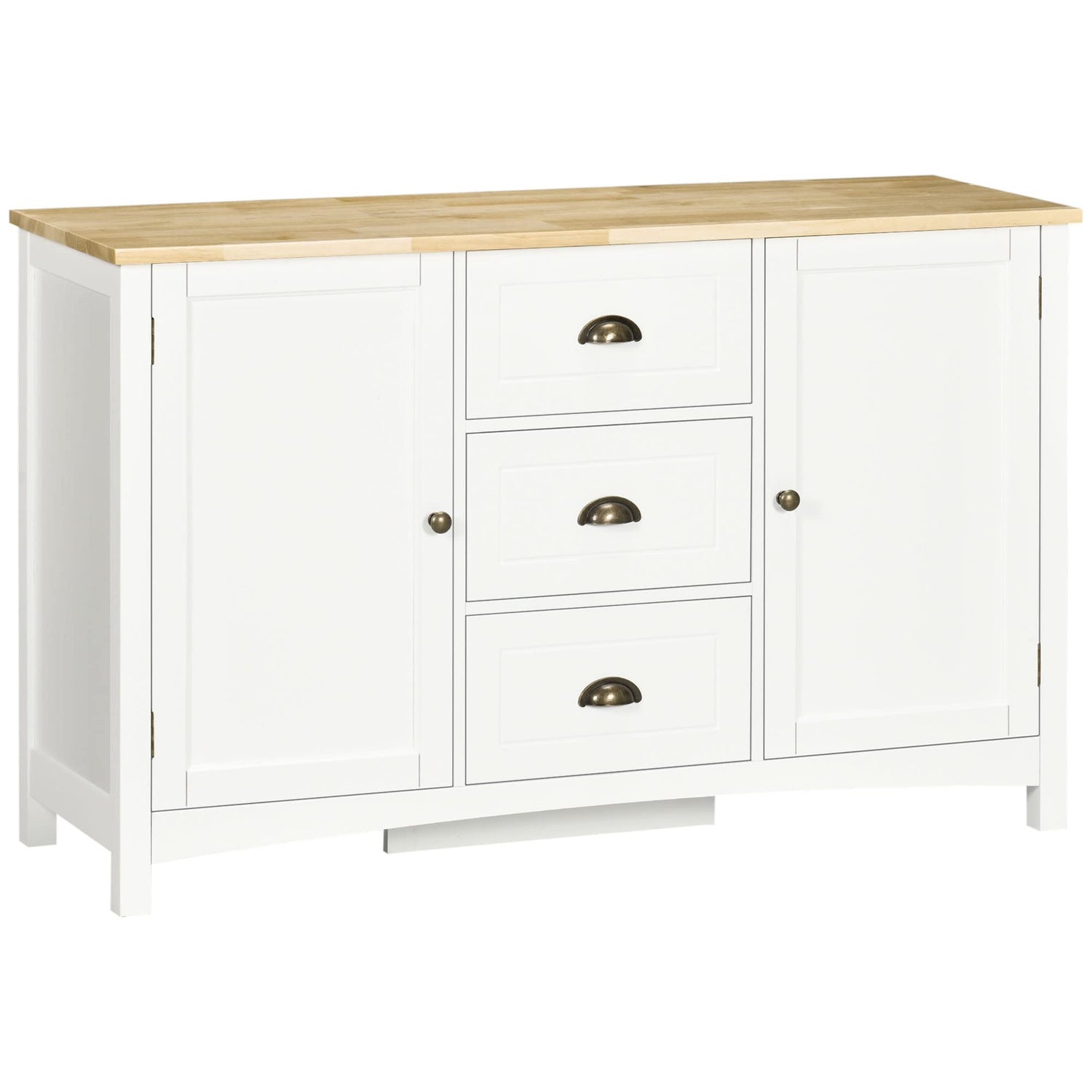 HOMCOM Sideboard Buffet Cabinet, Retro Kitchen Cabinet, Coffee Bar Cabinet with Rubber Wood Top, Drawers, Adjustable Shelves for Living Room, Entryway, White
