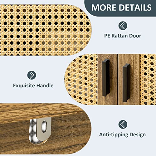 HOMCOM Sideboard Buffet Cabinet with Rattan Decorated Doors, Kitchen Cabinet, Accent Cabinet with Adjustable Shelves, Solid Wood Legs for Living Room, Hallway, Brown