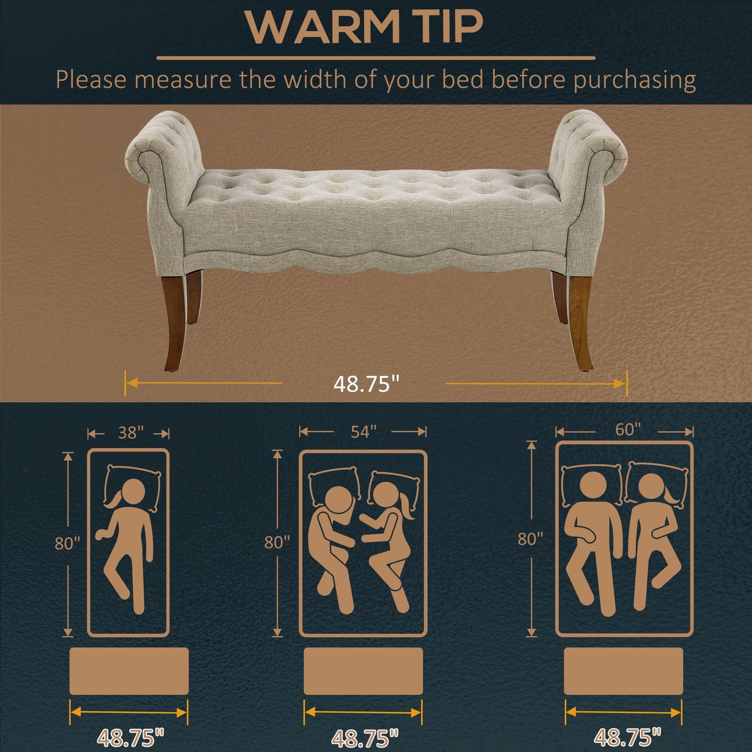 - Traditional-Style Bench: Soft, rounded arms with button tufted design cushion create a comfortable, traditional feel. The tufted bench's classic color combination makes it an all-match décor to fit every interior style.