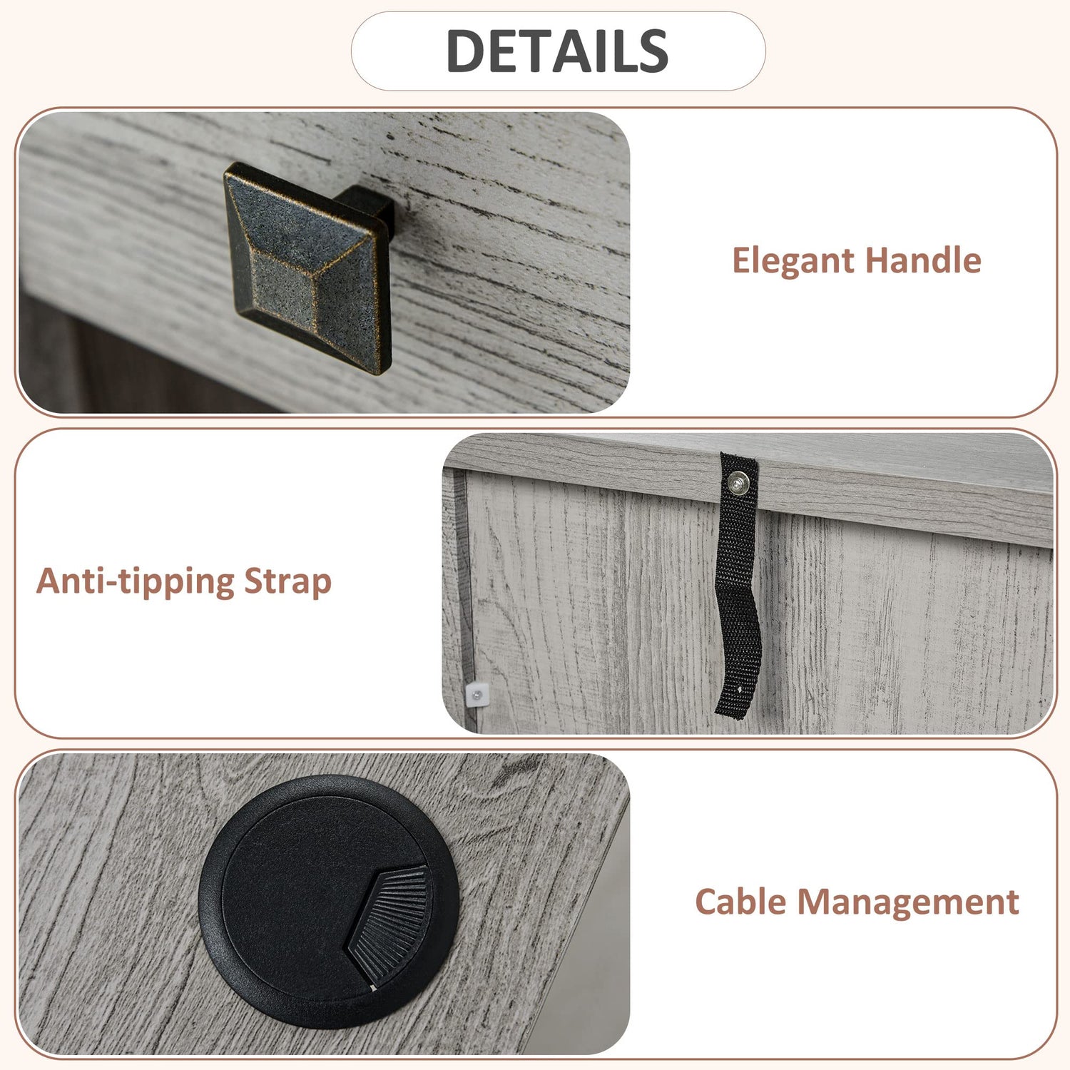 - Dimensions: Overall Dimension: 59" L x 23.25" D x 30" H, Weight Capacity: 198lbs (total), 22lbs (shelf), 11lbs (each drawer).