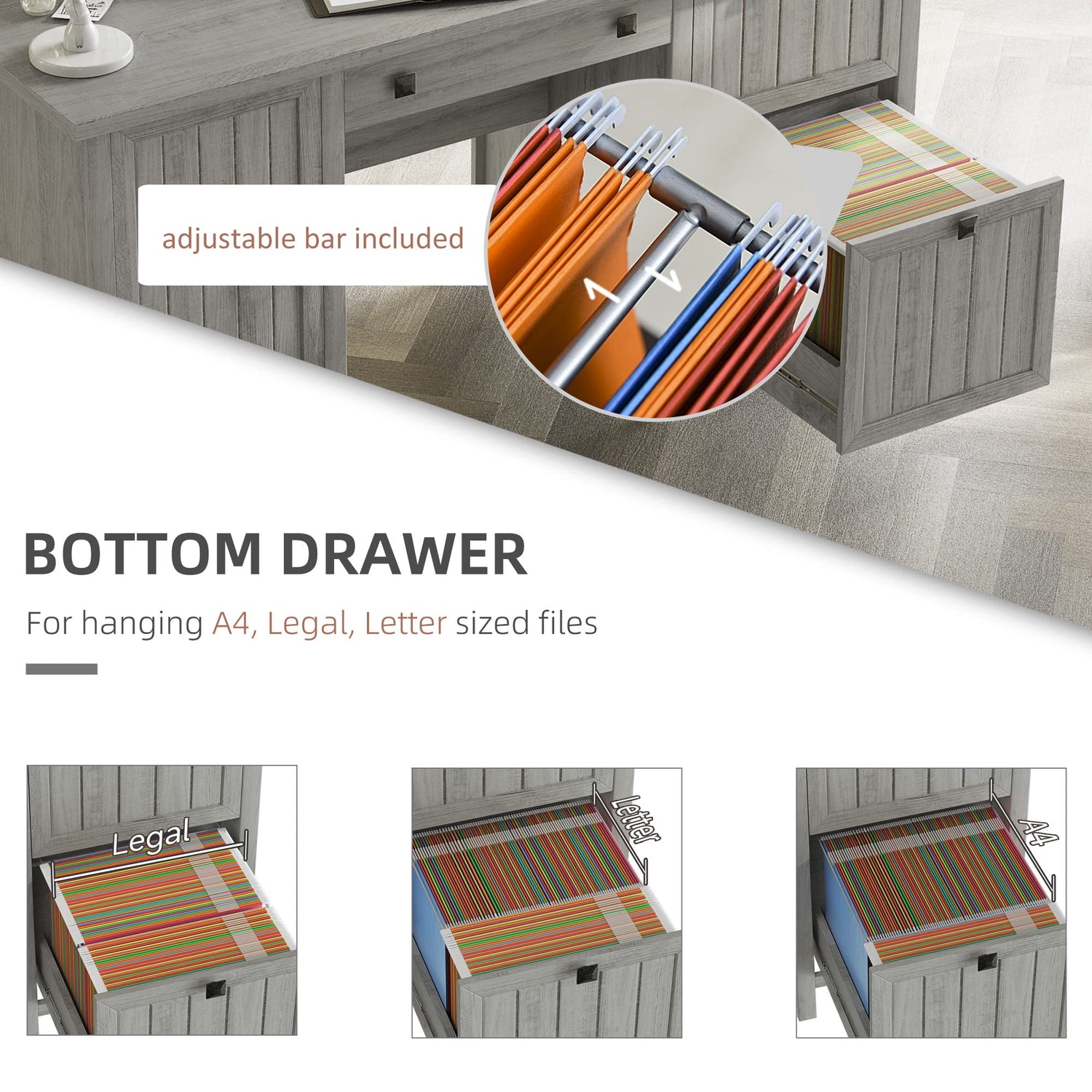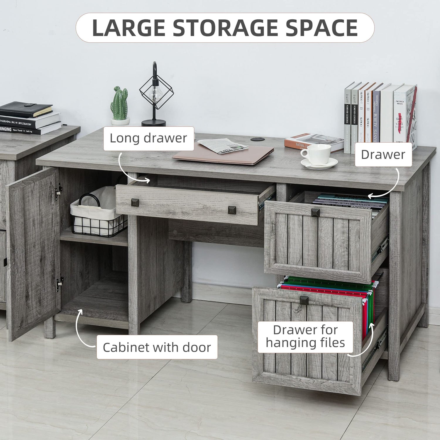 HOMCOM Vintage Executive Computer Desk, Home Office Work Station, Student Table with Cabinet & 3 Drawers for Hanging Files, Grey