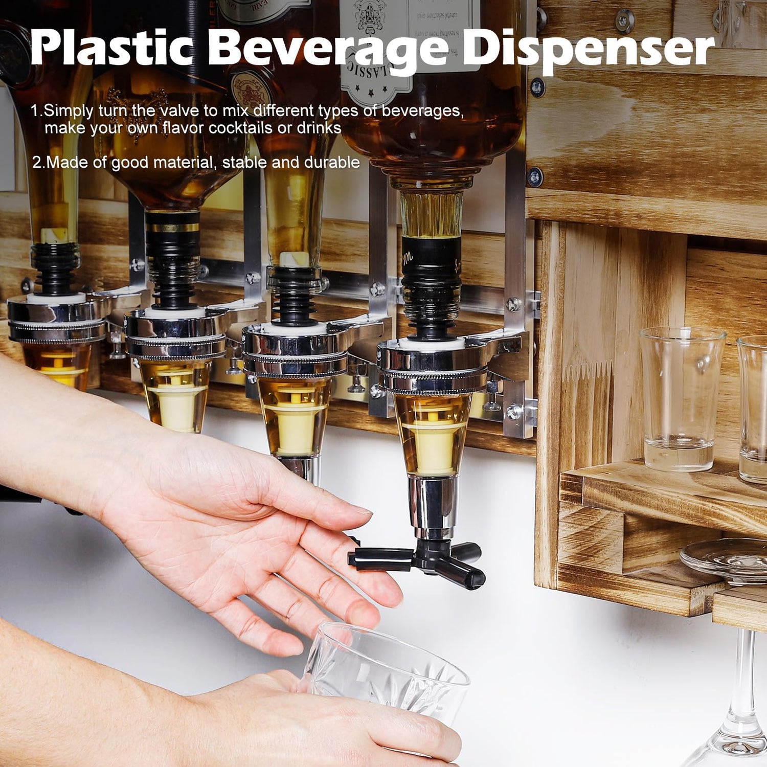 - BEVERAGE DISPENSER: The left side of the wall mounted wine rack is equipped with four wine dispensers, the dispenser material is plastic, suitable for standard bottles of 0.7-1 liters of gin, whiskey, wine, rum, liqueur. With this home mini bar you can also easily prepare drinks, cocktails and shooters. Maximum load bearing capacity on the left side of the dispensing area: 22lbs