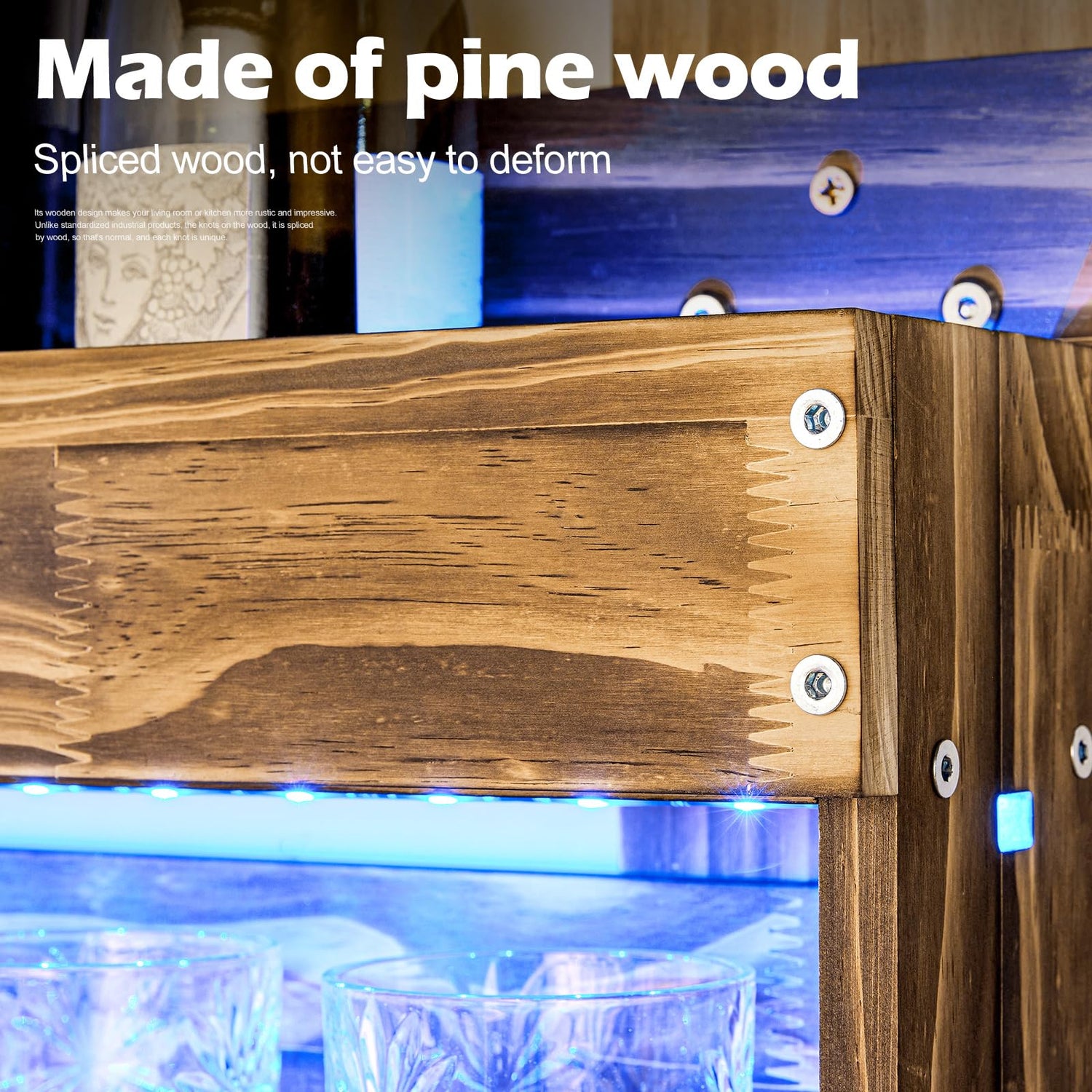 - WOODEN RUSTIC DESIGN With LED LIGHTS: This wine rack with lights features a contemporary twist on a rustic farmhouse style, with the ability to switch between 16 colors and over 60 lighting modes. The advanced farmhouse style gives the wine rack an elegant and stylish look, allowing you to choose your preferred lighting mode based on your mood.
