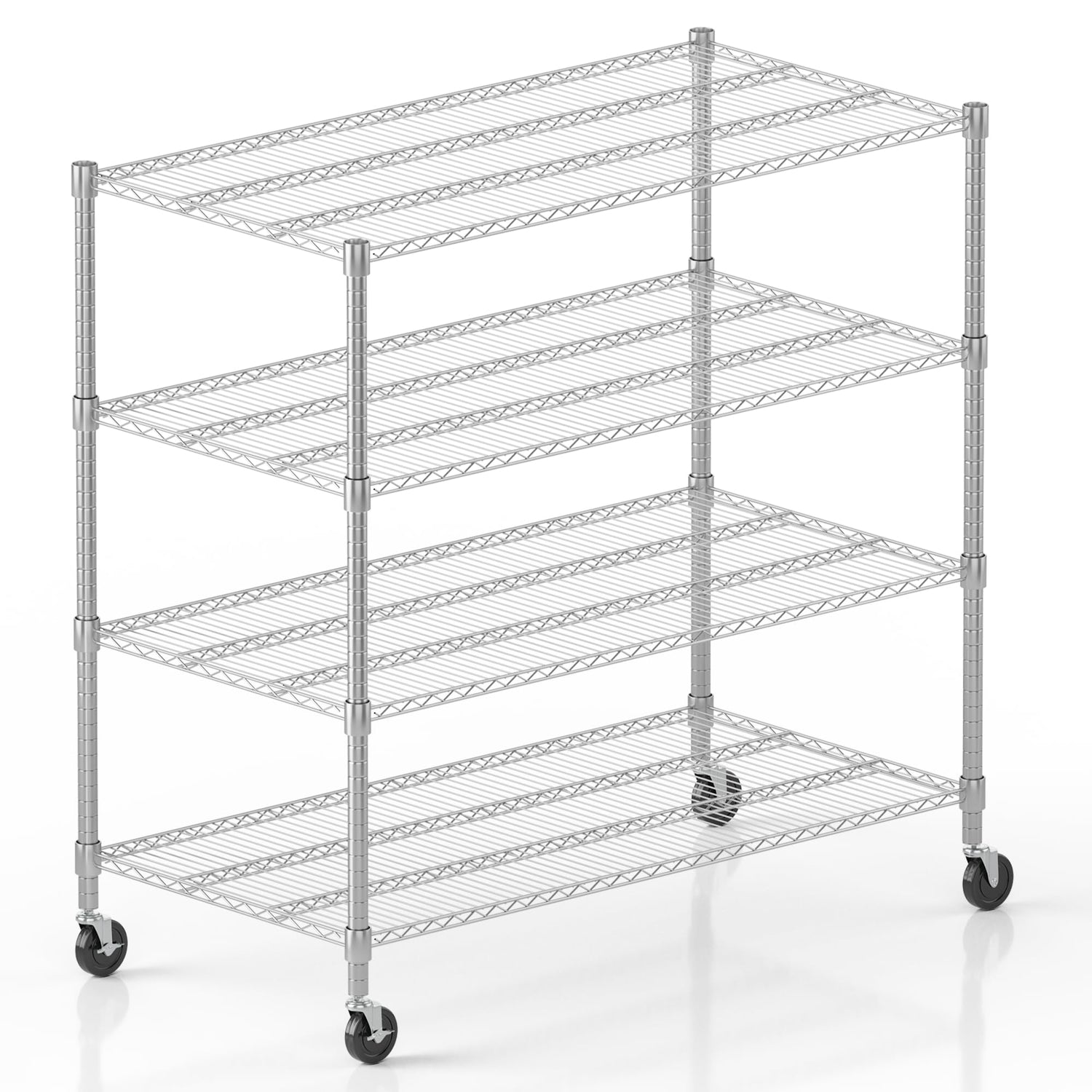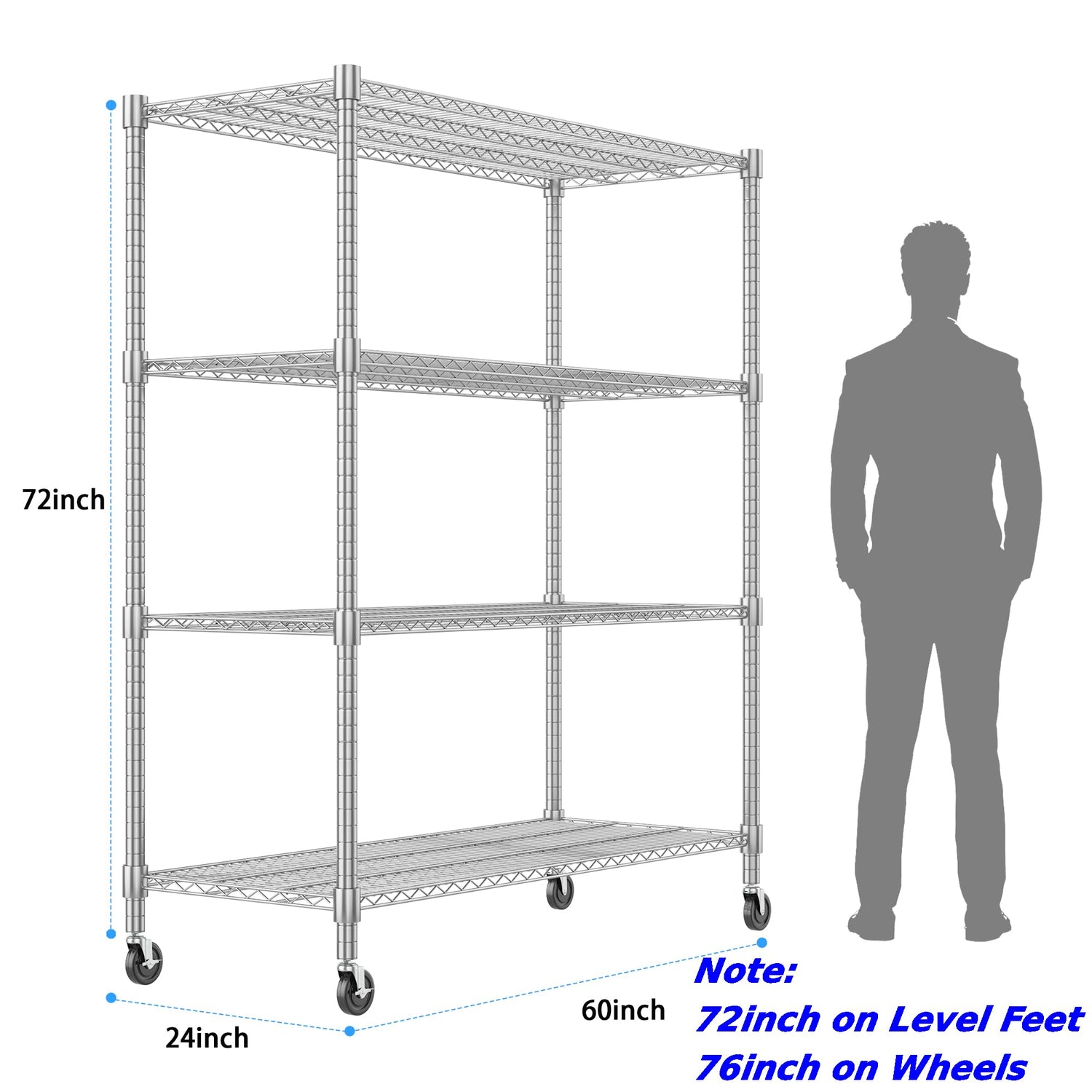 Homdox Heavy Duty Metal Shelves for Storage, 4 Tier Storage Racks and Shelving, Commercial Adjustable Wire Shelving Unit on Wheels, Garage Rack Pantry Shelves Kitchen Shelving, 24"x60"x72", Chrome