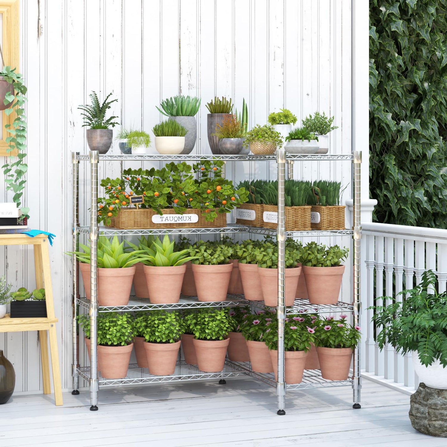 - 【HIGH LOAD CAPACITY】Made of high-quality carbon steel with powder coating, each shelf supports up to 300 lbs, with a total unit capacity of 1200 lbs
