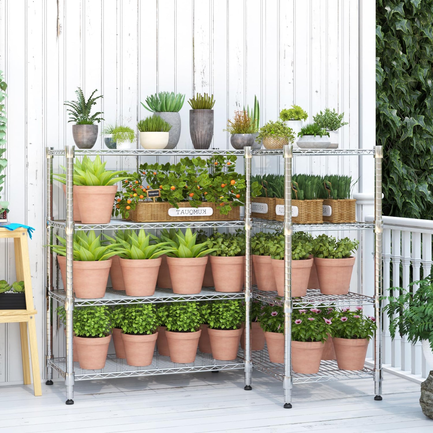 - 【ADJUSTABLE SHELVES】Customize shelf heights to fit various item sizes. Install the unit in either a straight-line configuration or a space-saving corner setup, offering flexibility to suit any room layout. Perfect for maximizing storage in both open and tight spaces