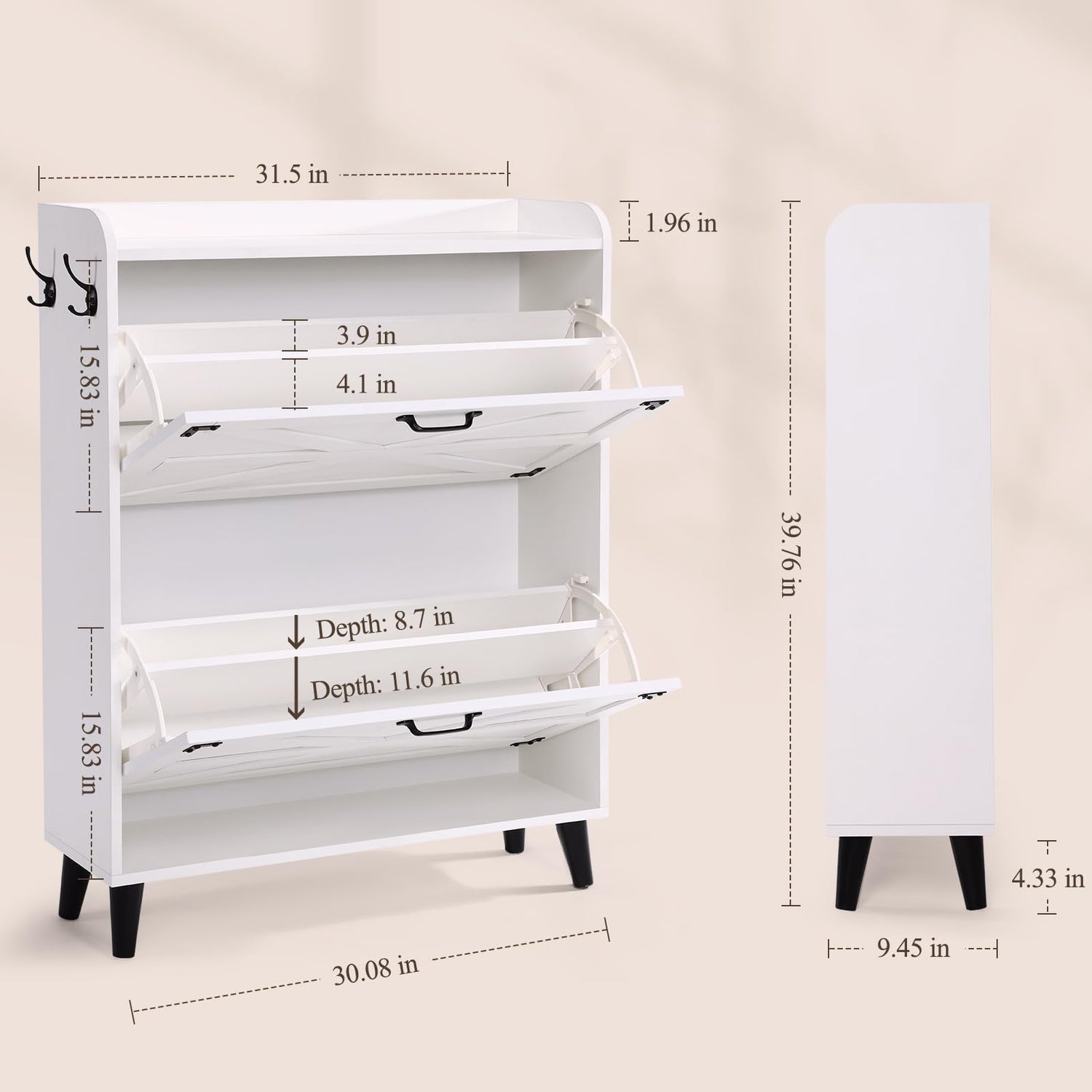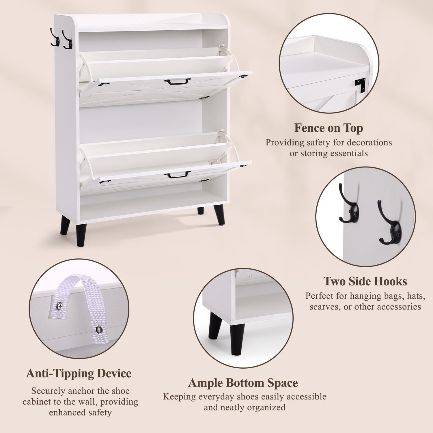 - 【Safe & Durable Construction】Crafted from high-quality MDF wood, this shoe cabinet storage for entryway is built for long-lasting durability and stability. The sturdy frame and 4 wooden feet ensure it can hold multiple pairs of shoes securely without wobbling. This hidden shoe cabinet contains an anti-tipping device, which can be fixed on the wall to prevent tipping and protect children's and pets' safety