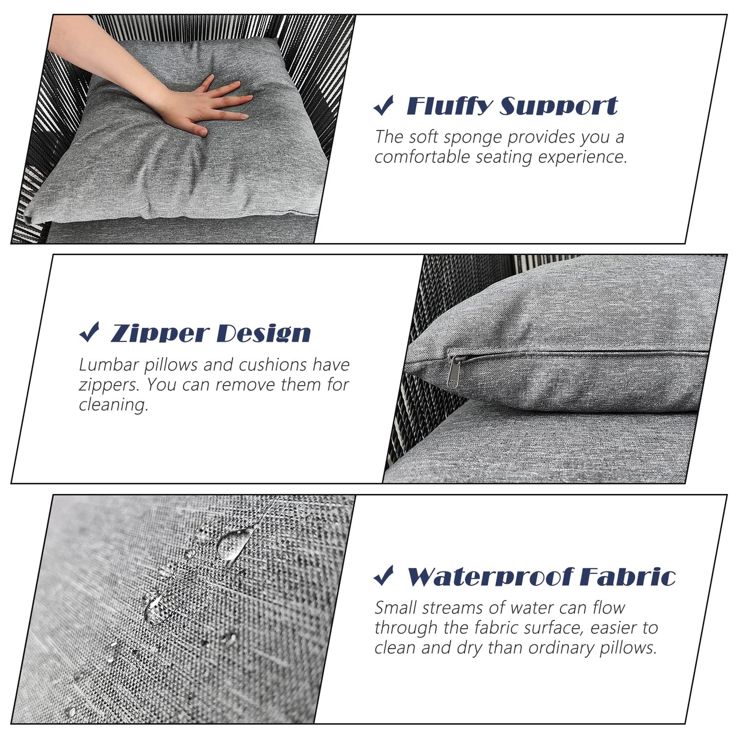 - Pillow Cushion with Zipper Included : The equipped cushion and lumbar pillow use high-quality outdoor special textile, wear-resistant, dirt-resistant, UV-resistant, and waterproof, not easily fade; easy to remove and wash. All In One Dining Table and Chairs Set: Patio dining set for 10 includes 1 table, 10 chairs, 10 cushions, 10 pillows.