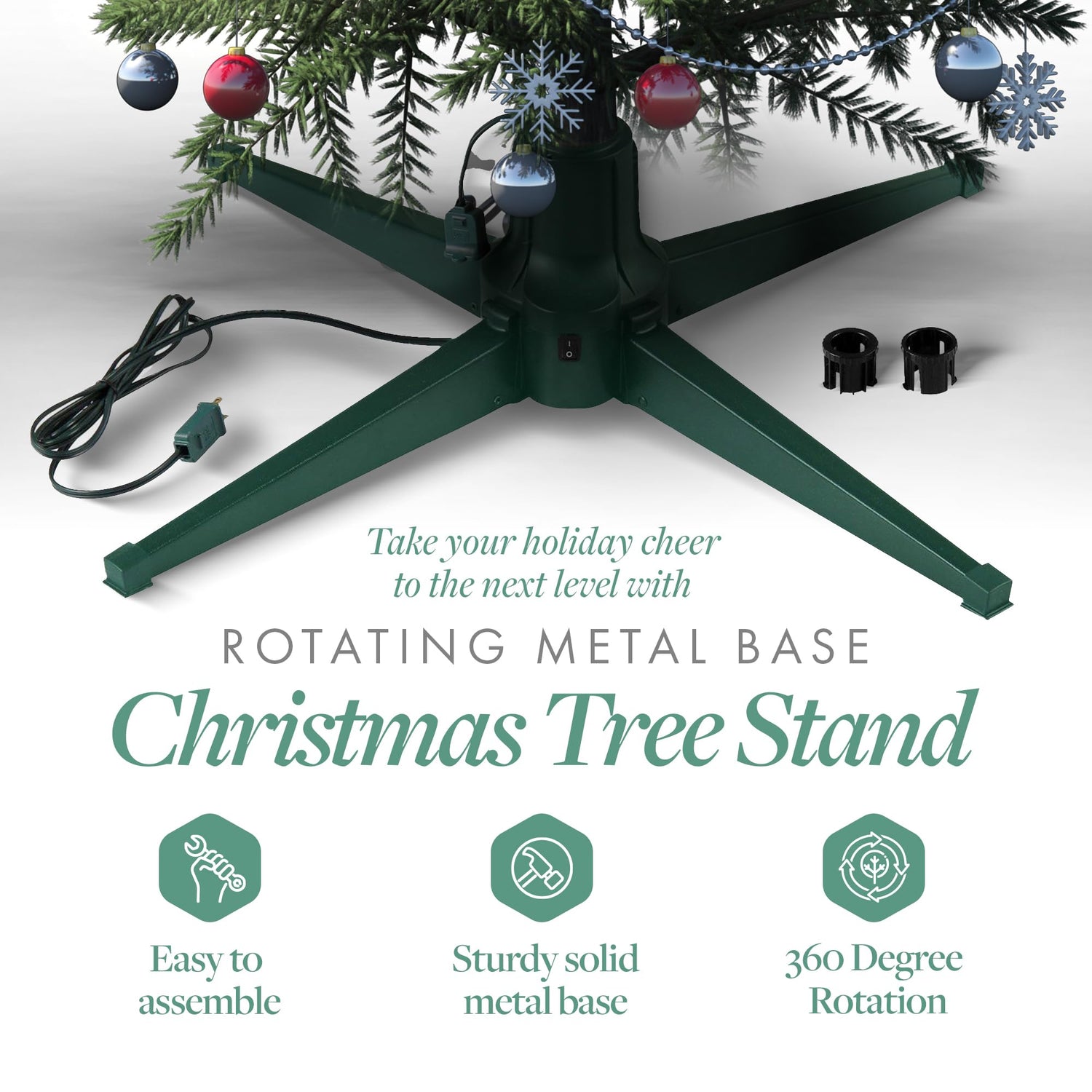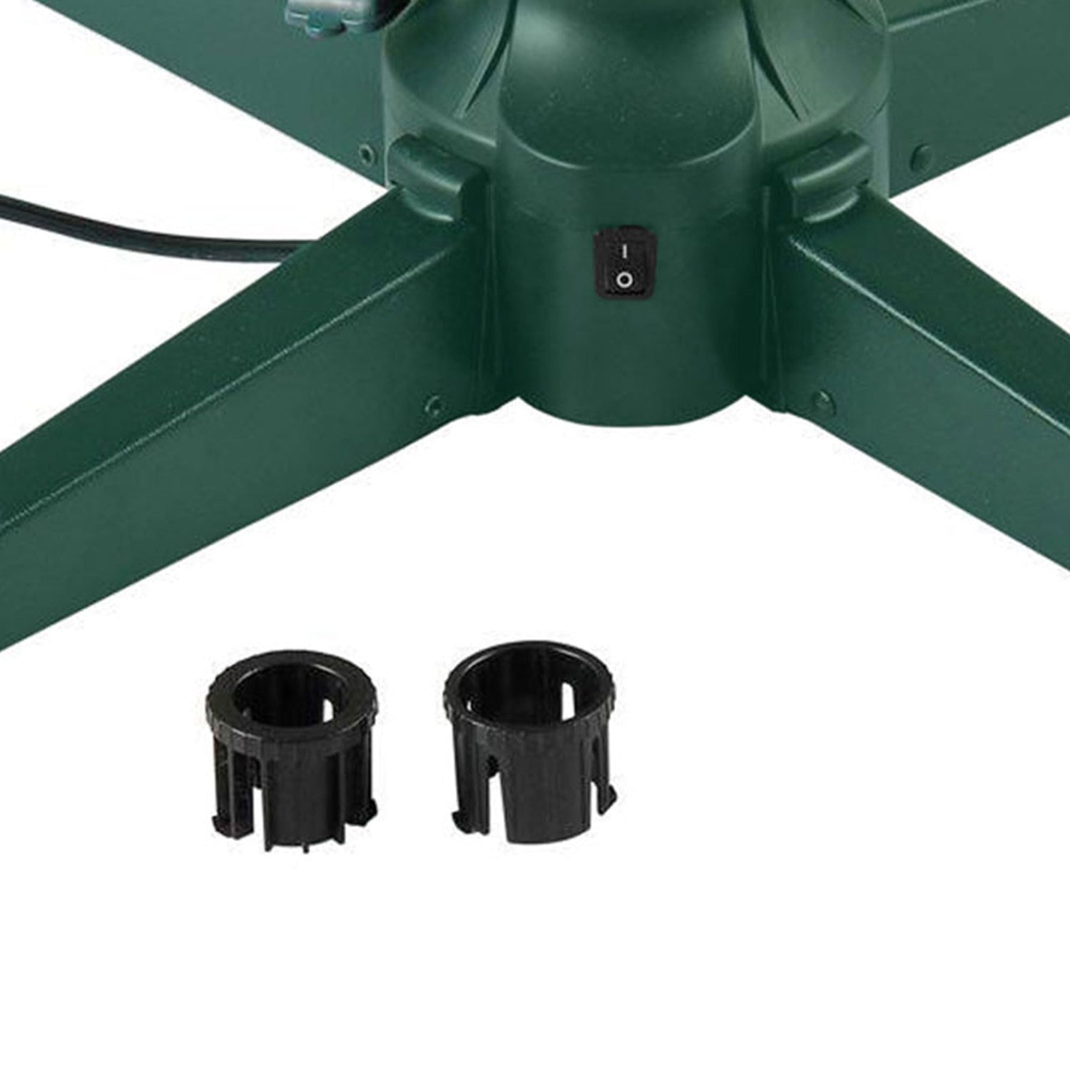 - Rotating Tree Base: Includes 3 adapters for an exact fit that steadily supports the beautifully decorated tree. Simply plug the tree cord into the base and plug the base cord into the outlet, allowing a full 360-degree rotation for added holiday cheer.
