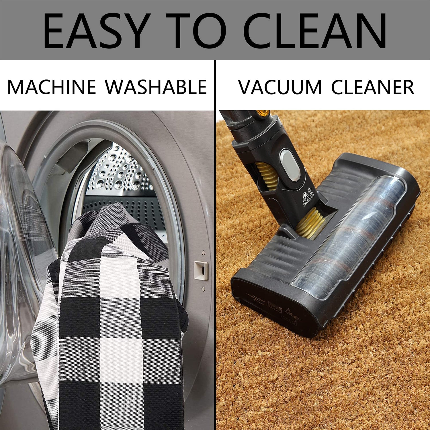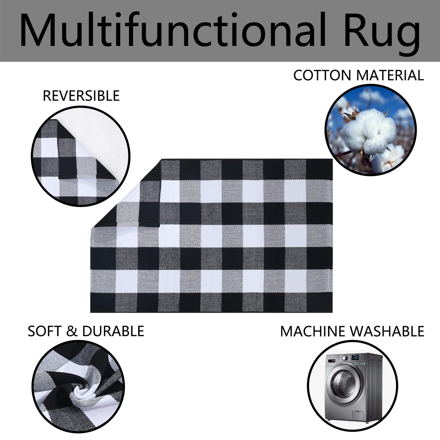 - Soft & Washable Cotton Rug – The 28"x43" buffalo plaid rug is handwoven with high-density cotton; soft underfoot yet strong enough for outdoor use and machine washable for easy care