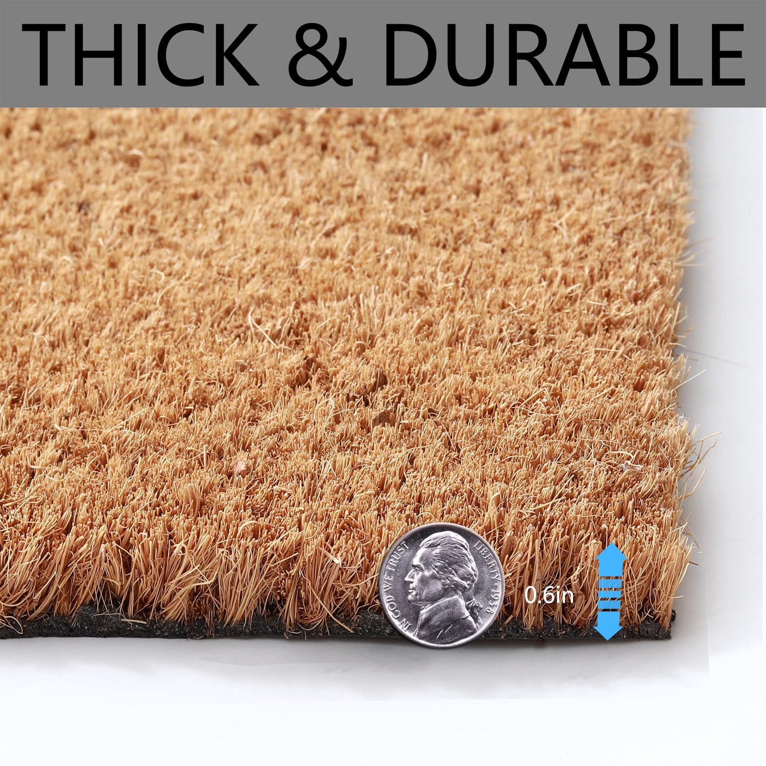 - Durable Natural Coir Mat – Crafted from 100% coconut fibers; the thick coir mat (0.6") naturally removes dirt, mud, and debris while keeping your home clean and welcoming