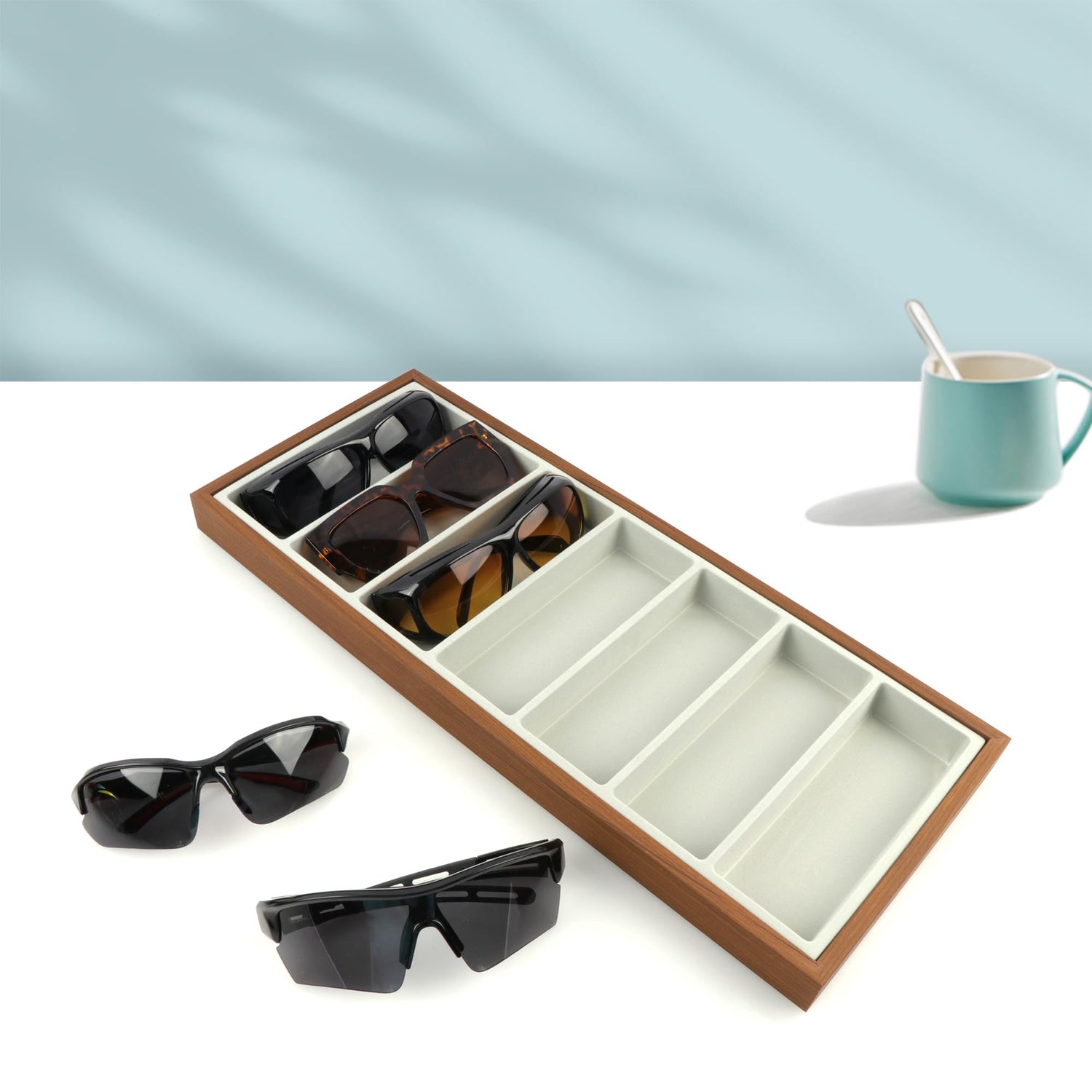 Homeanda Wooden Sunglasses Organizer Tray, Eyeglasses Display Case, Sun Glasses Storage Box, Eyewear Jewelry Tray, Wood Frame Glasses Holder (7 Grids)