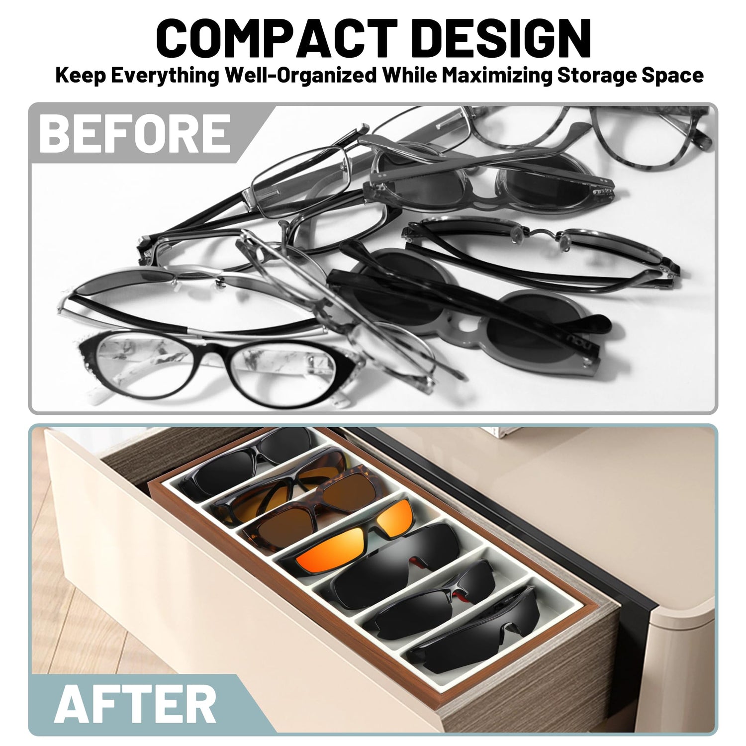 - Premium Velvet Protection:Constructed with a soft velvet material, this sunglass drawer organizer ensures your eyeglasses are protected from scratches and damage. Its gentle texture is perfect for keeping your frames in pristine condition.