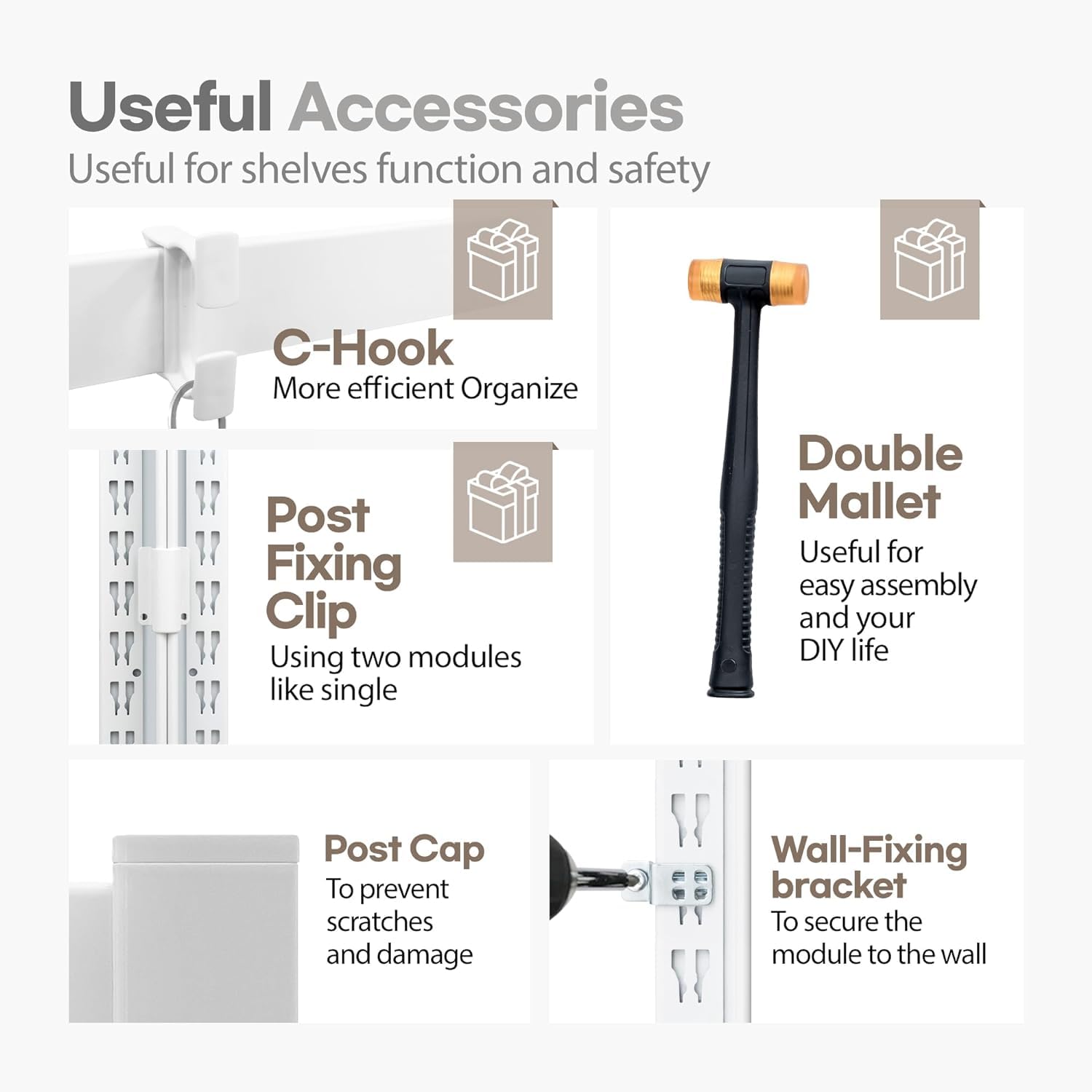 - UNIQUE BENEFIT OF ONLY HOMEDANT - You can make shelves as the basic flat shelf, rimmed basket-style shelf, or shelf blended with two (Basic flat+ basket). So you can load various types of things. Provide all purchasing customer special gift(Urethane Mallet, C-Hook, Post Fixing Clip, Wall Fixing Bracket) Provides assembly manual & videos to help you understand easier.