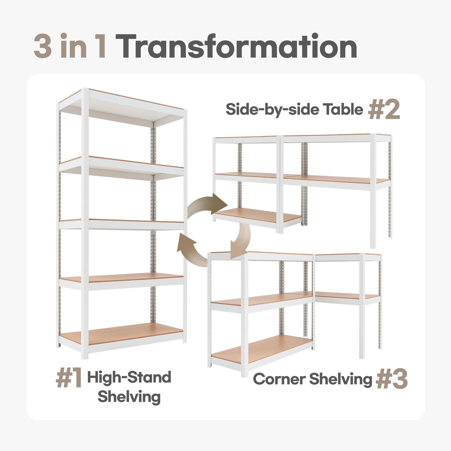 - VERSATILE MULTIPURPOSE SHELVES - It can be used as 2 shorter units for as a table, workbench, or corner shelves, or make a tall shelving by stacking them using the post connector. It’s perfect for the kitchen, pantry, cellar, closet, bathroom, garage, warehouse, outdoor shed. Also, suitable for school, hospital, office and shop and more that require a lot of shelves. You can place a microwave oven, tools, clothes, books, and whatever else is taking up space.