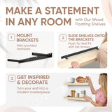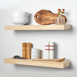 - Thick Solid Pine Wood: Unlike others, Homeforia shelves are handcrafted from the finest 1.75" Thick natural pine wood measuring 24" Wide x 6.5" Deep x 1.75". This floating wall shelf set comes Unfinished and ready for your DIY Staining Project. Each Shelf reveals its unique character of knots and natural brown wood grain; each ledge is a little different but equally stunning.