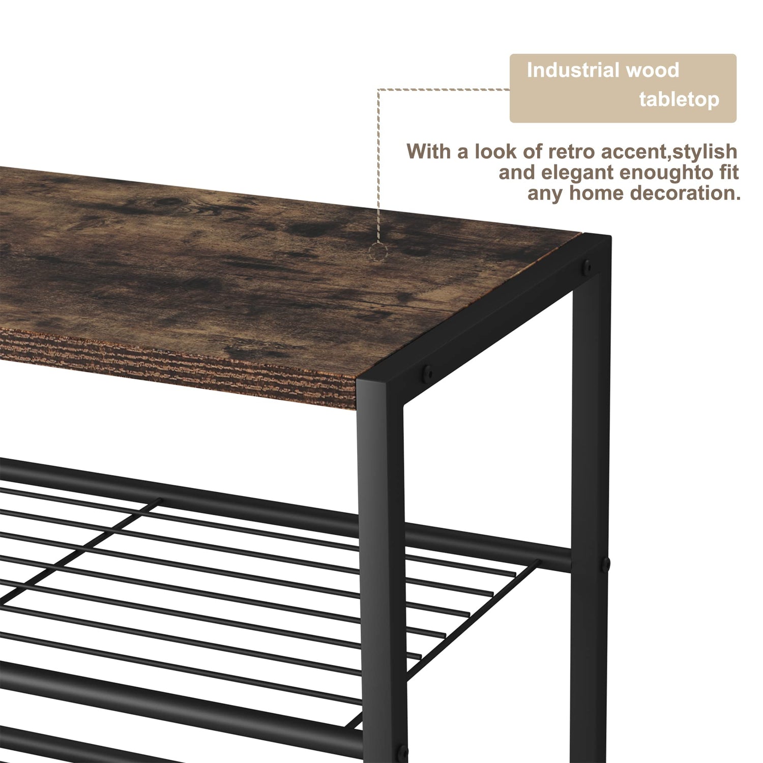 - Industrial Shoe Organizer with Large Tabletop: Specially designed with a look of wood accent, this small shoe rack is decorative enough to suit any corner of your house.