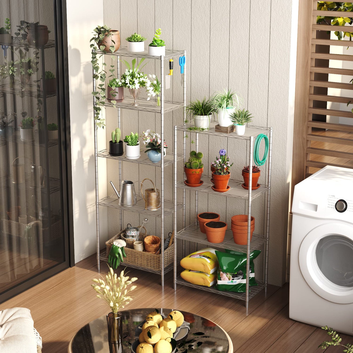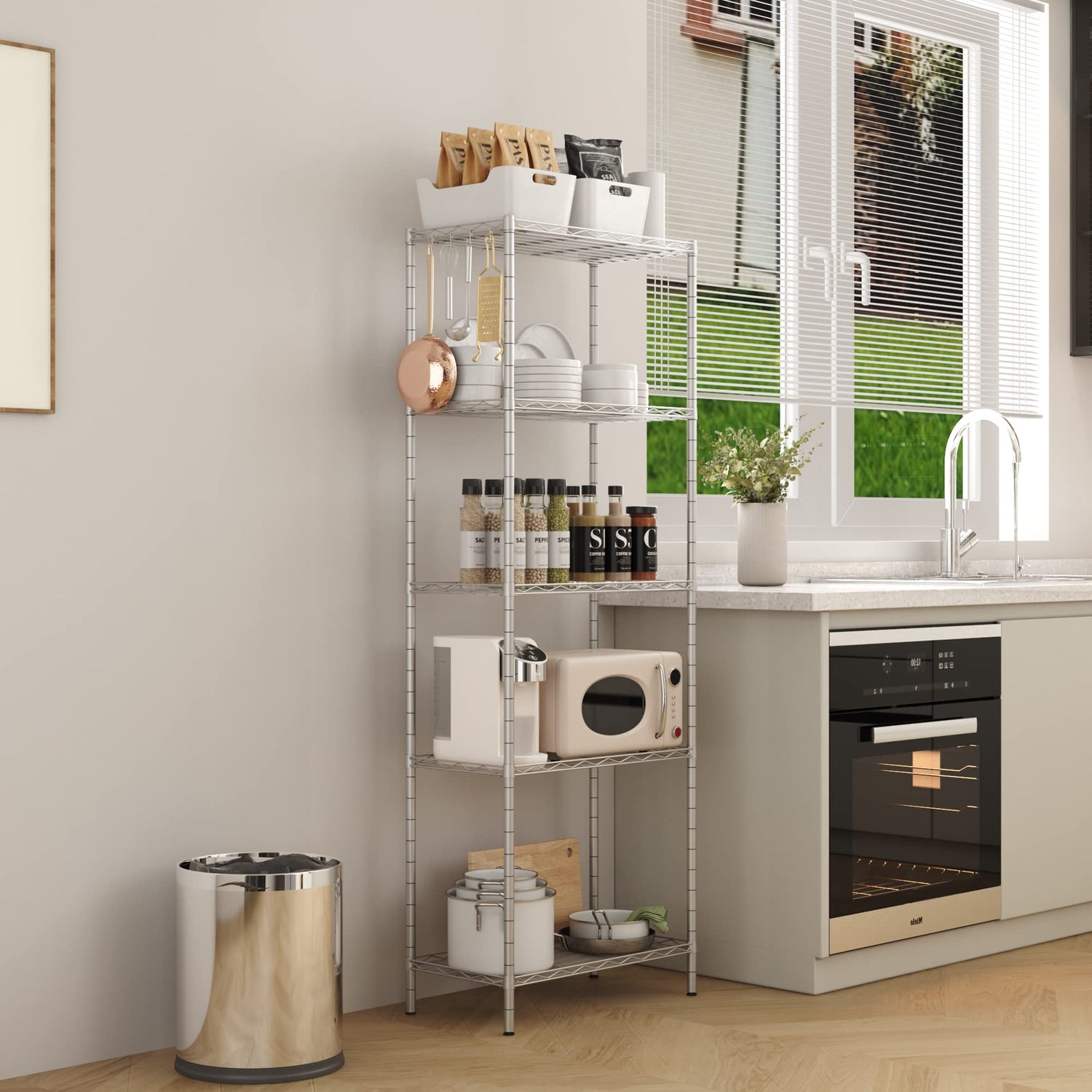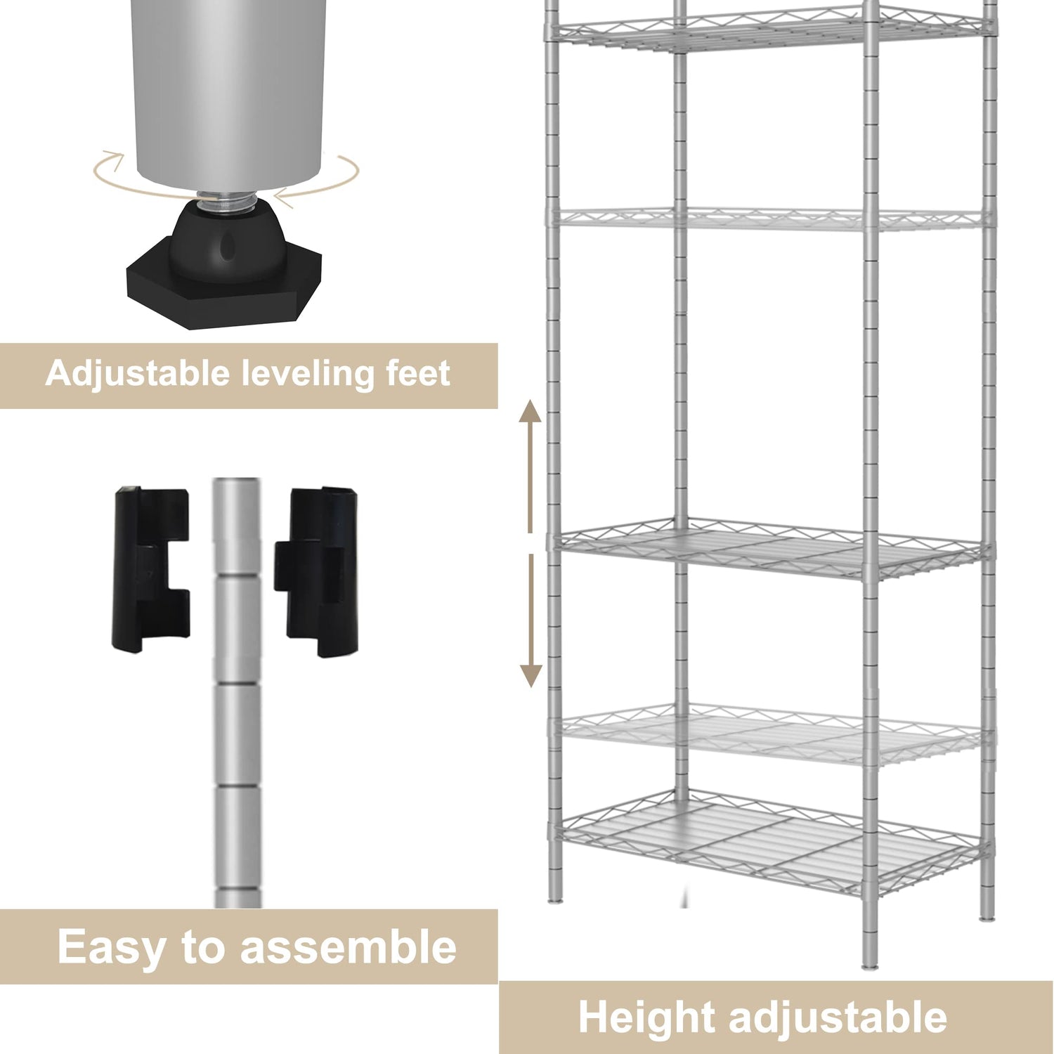 HOMEFORT 5-Shelving Unit, Adjustable Wire Shelving, Metal Wire Shelf with Shelf Liners and Hooks for Kitchen, Closet, Bathroom, Laundry,Sliver,21" W x 11" D x 59" H