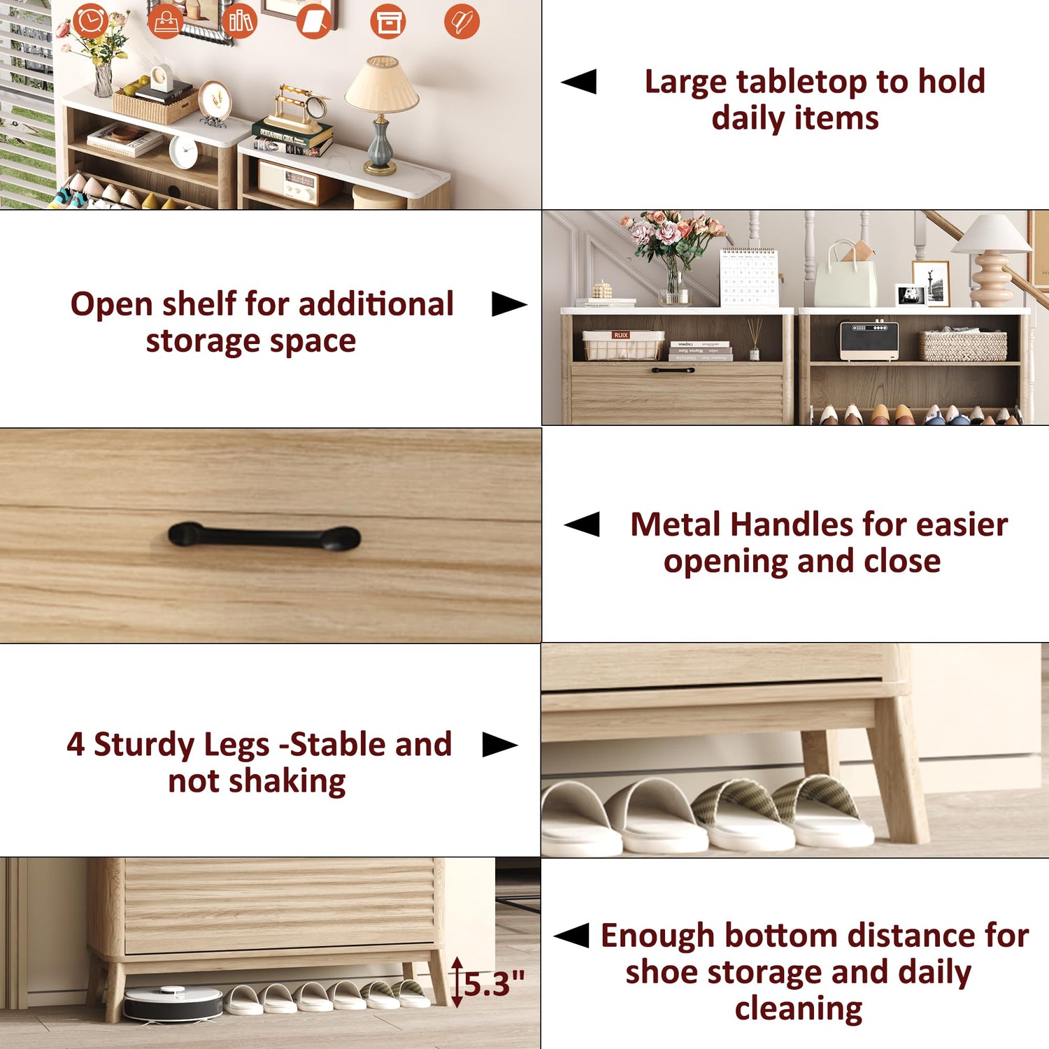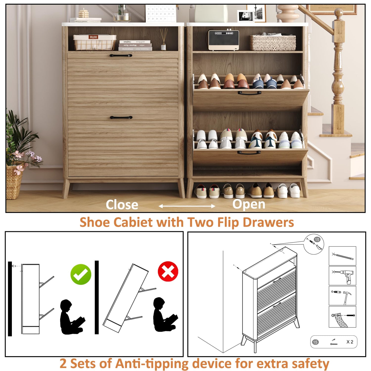 - Easy to Assemble and Anti-tip Feature: With clearly labeled assembly parts and well-illustrated instructions, this fluted shoe rack cabinet is simple and quick to assemble. The cabinet also includes an anti-tipping device for wall mounting to enhance safety.