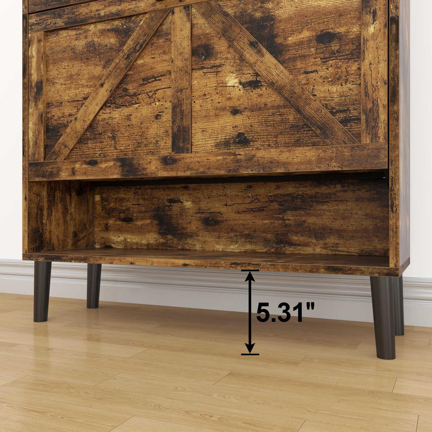 HOMEFORT Shoe Storage Cabinet for Entryway, Slim Shoe Organizer with Two Flip Drawers, Narrow Shoe Rack Cabinet with Wood Legs, Farmhouse Hidden Shoe Cabinet for Front Door Entrance,Rustic Brown