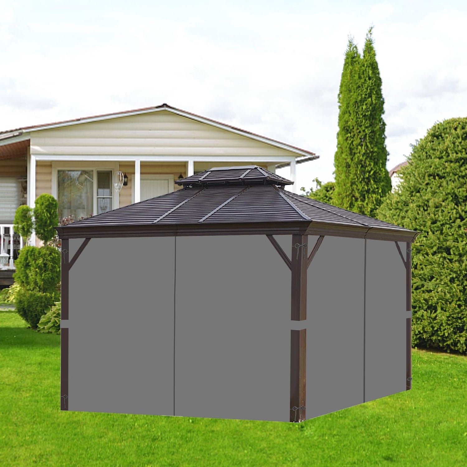 homegroove Gazebo Curtains Outdoor Waterproof 10 * 10ft, Privacy Curtains 4-Panels, Gazebo Replacement Curtain with Zipper for Garden, Patio, Yard (Only Curtains) Gray