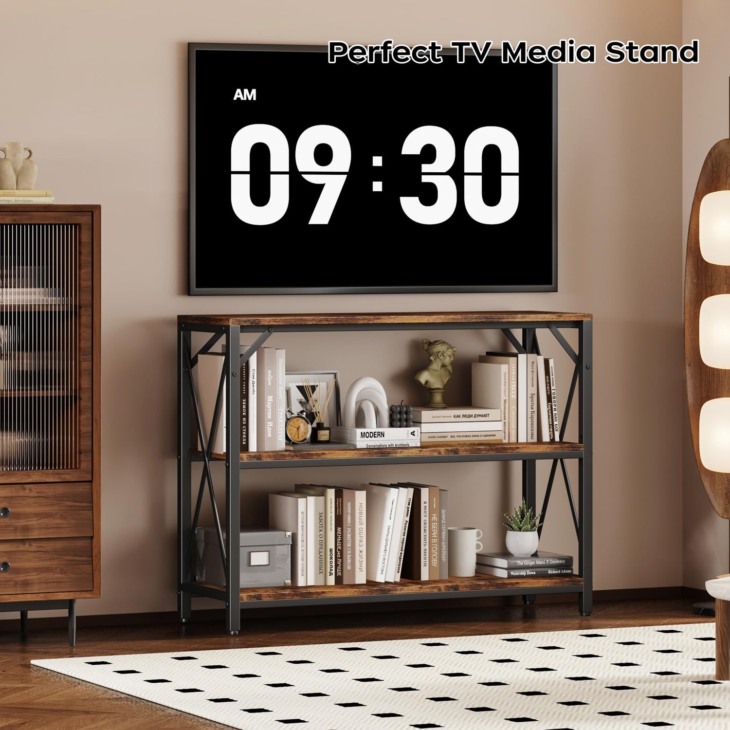 Homeiju Entry Table 40" Width, 3-Tier Entryway Table with Storage, Industrial Sofa Table with Open Shelves, Foyer Tables for Entryway, Hallway, Kitchen, Living Room and Bedroom, Rustic Brown
