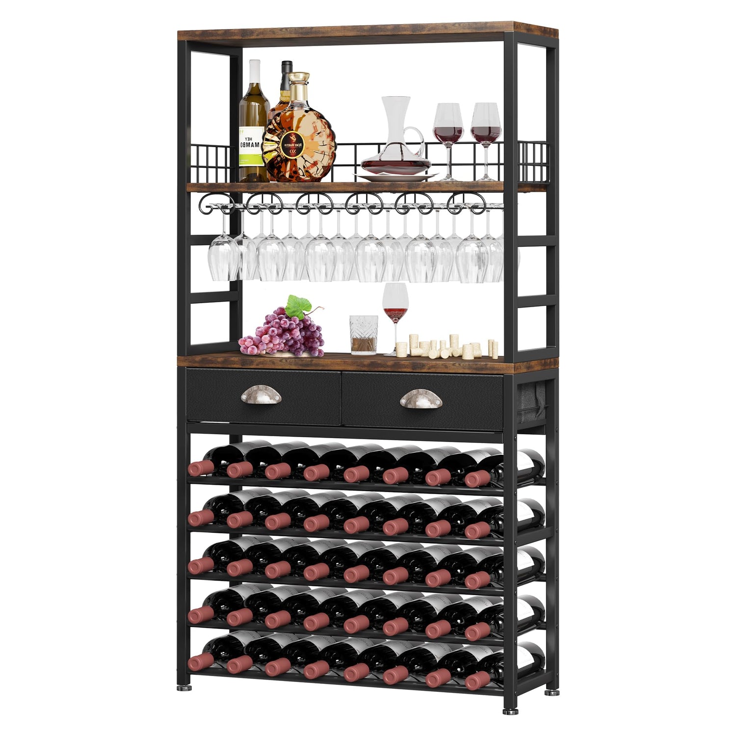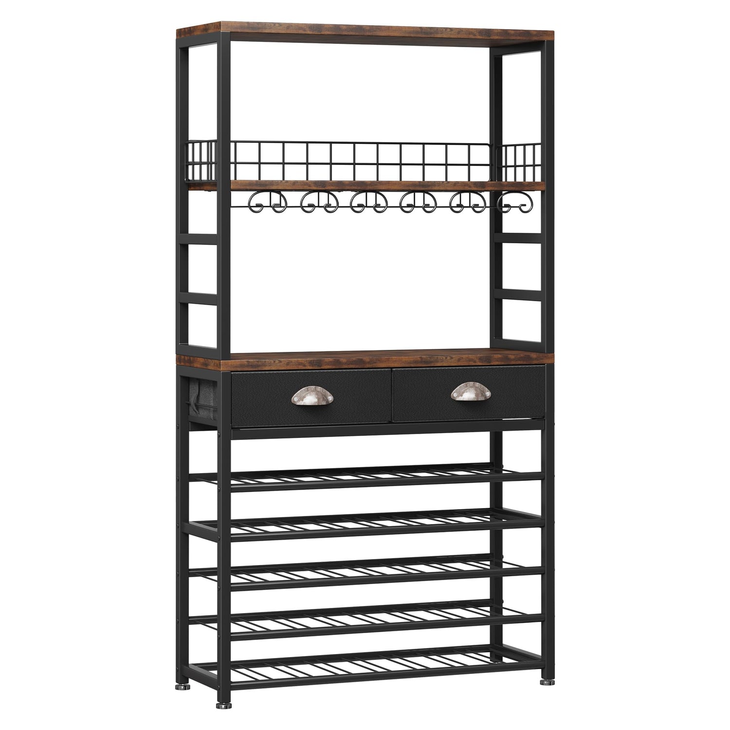Homeiju Wine Cabinet with Storage, Bar Cabinet with Wine Rack, 6-Tier with Tabletop, Storage Drawer and Wine Storage for Home Bars