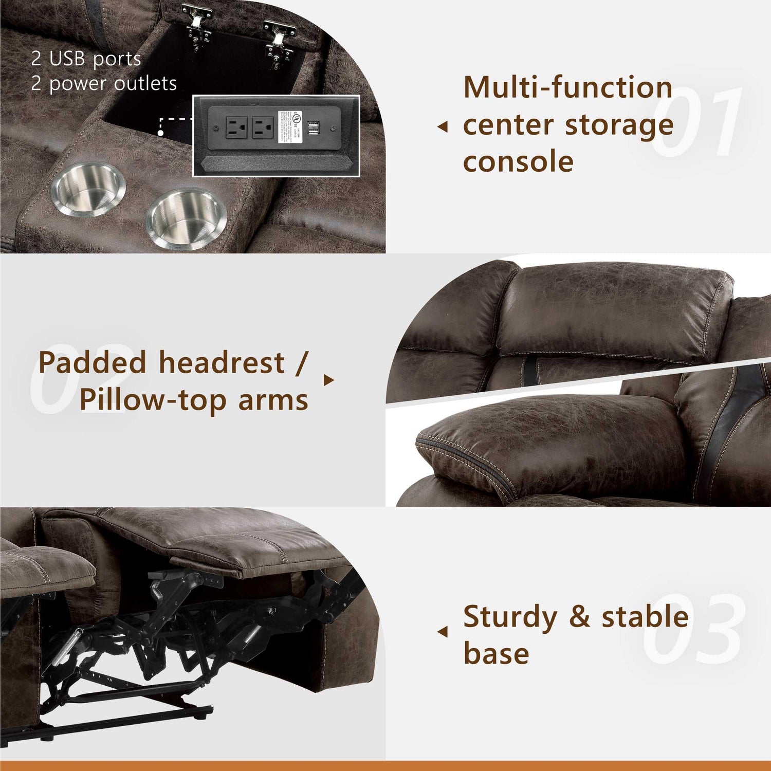 - [Top-In-Class Comfort] Relax on high-resiliency foam cushions wrapped in polished microfiber that's sure to please. Crafted with dual-sided reclining, pull-tab mechanism, and a lift-top storage console along with two cup holders.
