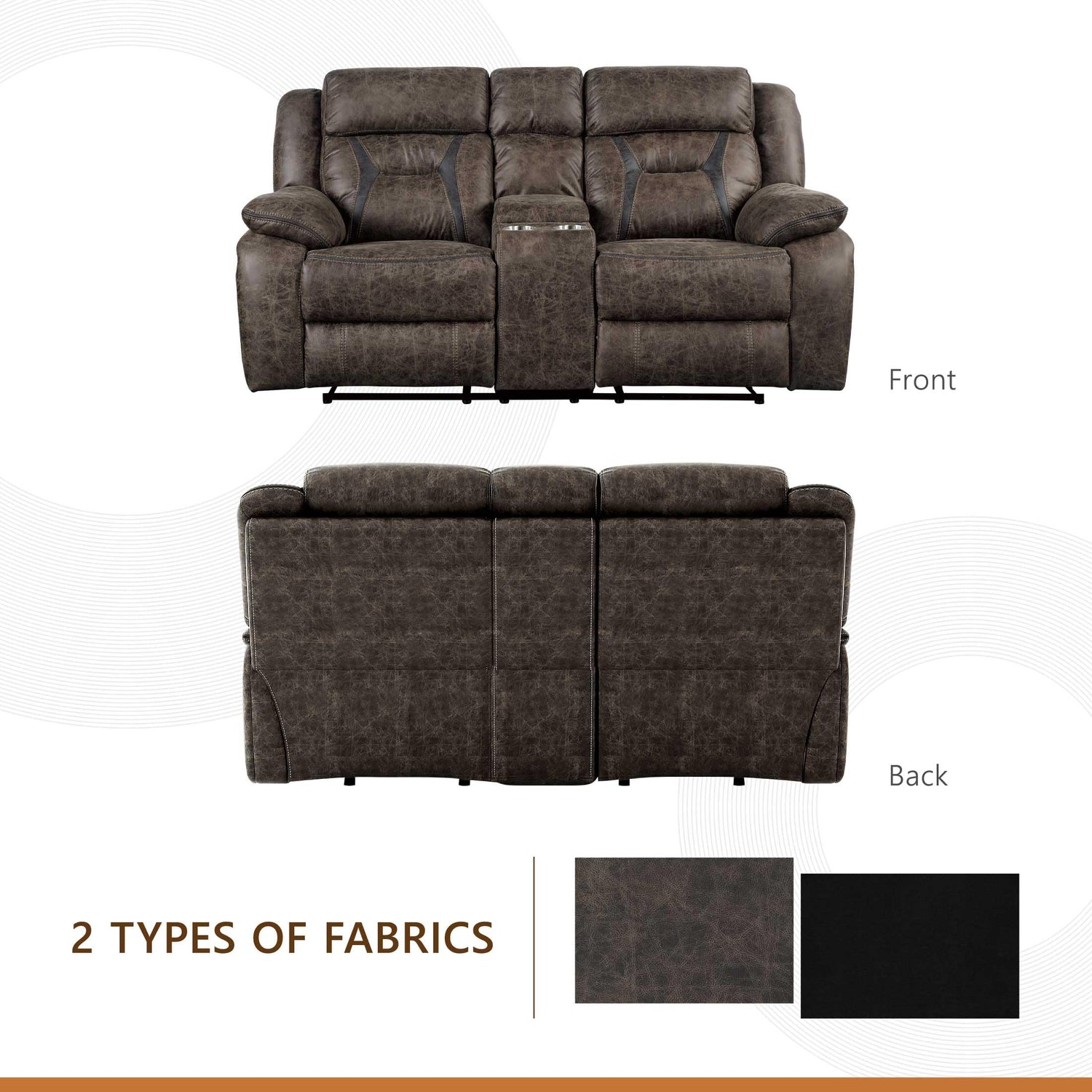Homelegance Reclining Loveseat, Polished Microfiber Manual Double Recliner Loveseat with Center Console, Dark Brown