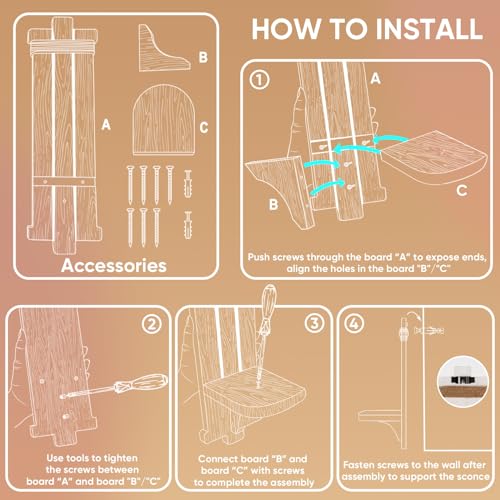 - 【Easy to Install】: No additional accessories are needed, you just use screws to assemble your plank. Fasten the candle sconce to the wall with screws, including a screwdriver, screws and installation instructions.