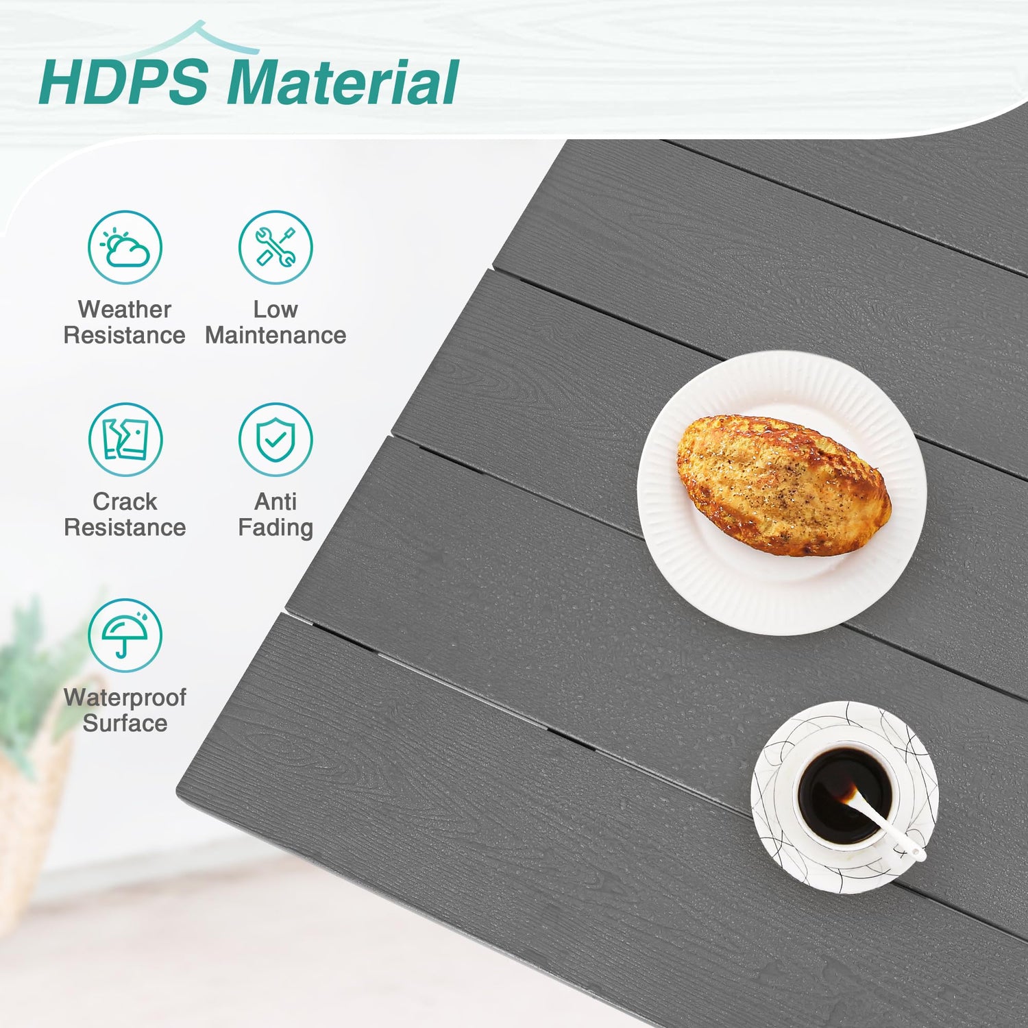 - Low Maintenance Requirements: Should dirt or grime accumulate, simply clean the patio dining table with warm water and a soft-bristle brush to restore its original shine. The design allows you to spend more time enjoying your outdoor space.