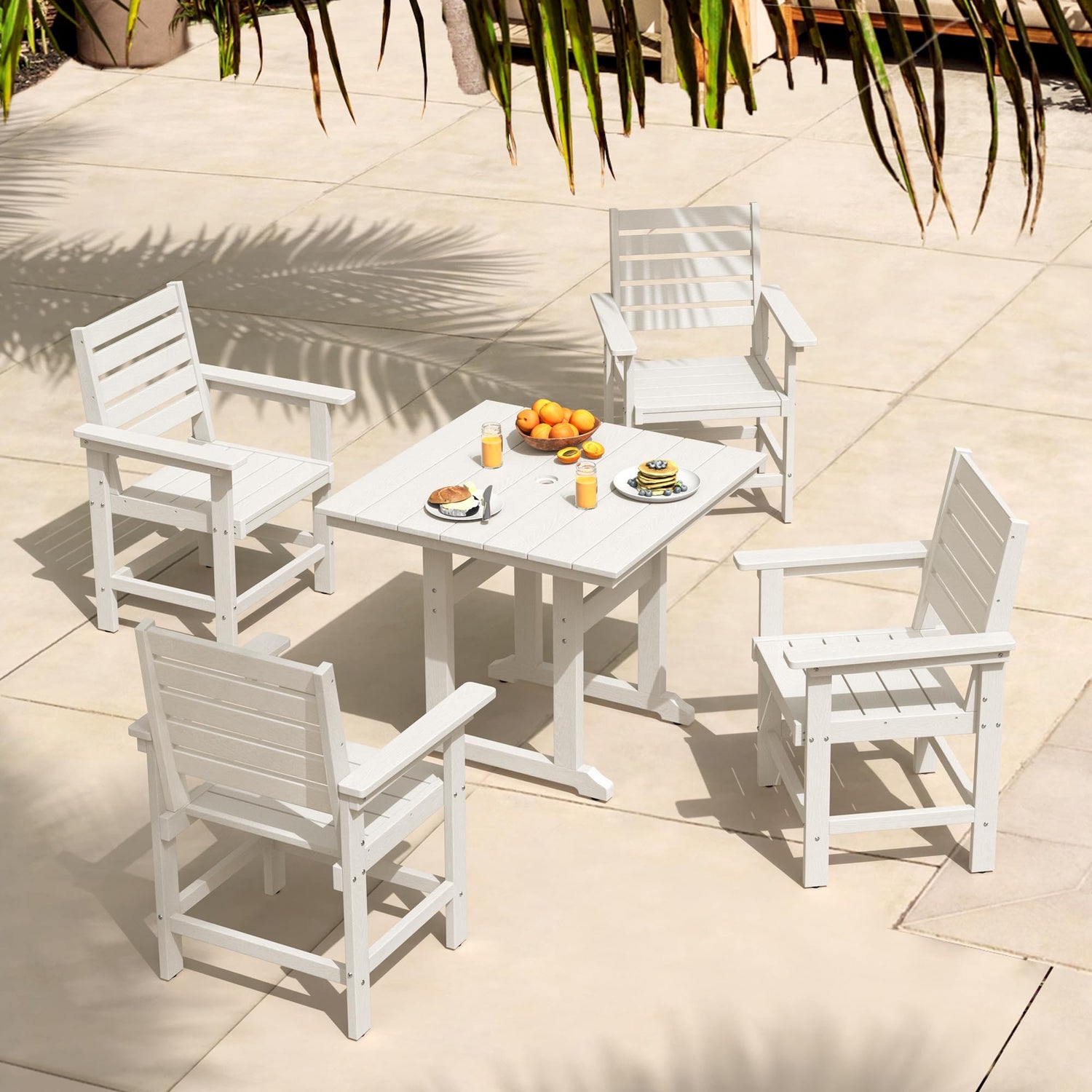 Homenjoy Patio Table and Chairs Set 5 Pieces, HDPS Weather Resistant Outdoor Dining Set, Square Outdoor Dining Table with 4 Patio Chairs, Patio Dining Set for Balcony, White