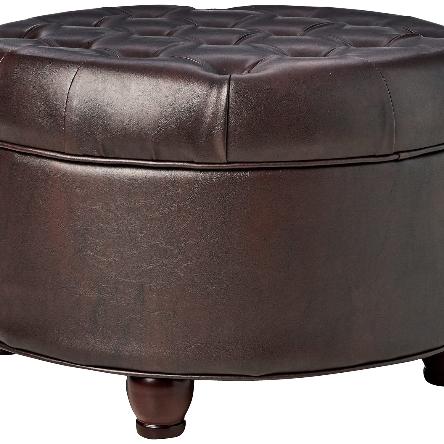 Homepop Home Decor | Button Tufted Faux Leather Round Storage Ottoman | Ottoman with Storage for Living Room & Bedroom (Distressed Brown)