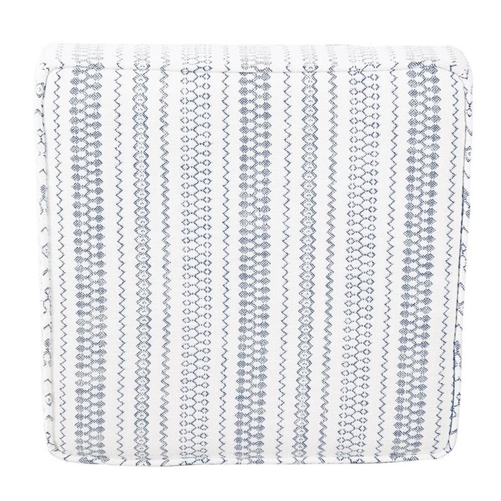 - STORAGE OTTOMAN: Featuring a blue and white farmhouse strip, this Classic Square Ottoman with Storage with lift-off top is perfectly completed with wood legs in a natural finish | Scaled to fit in a smaller place