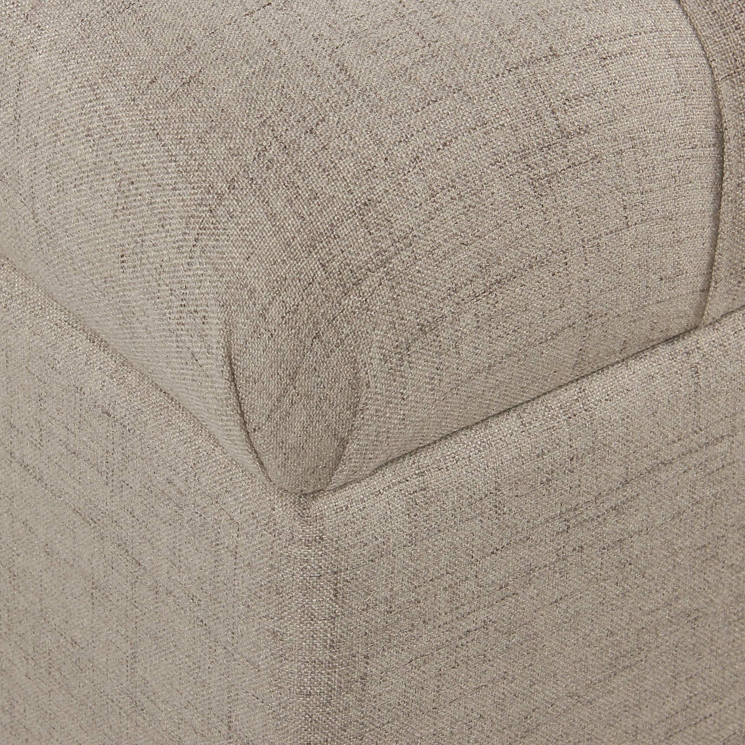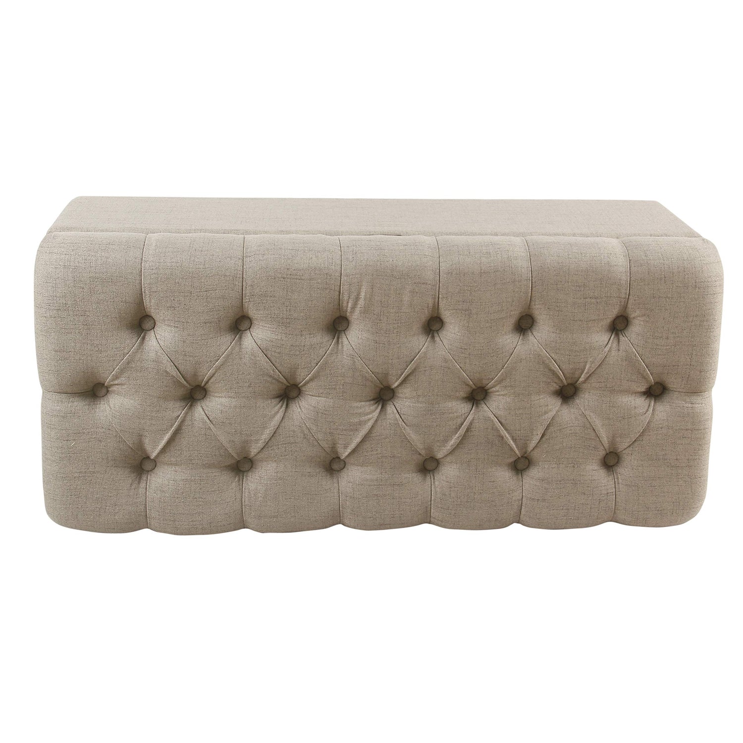 Details: Plush yet practical, the Ainsley tufted storage bench provides a variety of home décor and storage options. Use it as a coffee table ottoman in a living room to serve guests. Put it in a family room to prop feet up after a long day. Or, place it as an end of bed Bench to store pillows and blankets when not in use. With solid wood legs in a contrasting finish, Soft textured fabric, and a hinged lid for easy access, The Ainsley storage bench is a premium addition for any home. Easy to assemble and maintain.