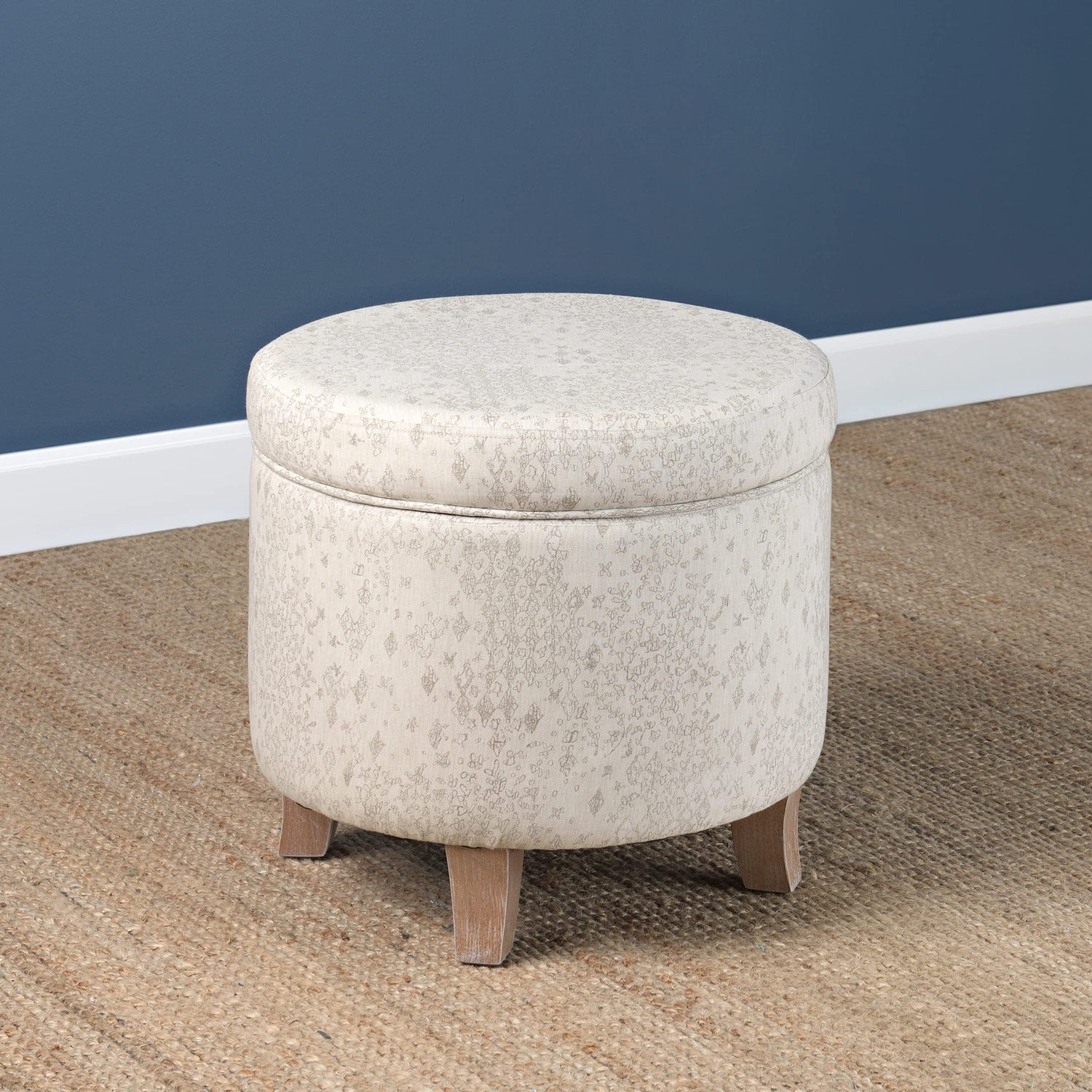 - STORAGE OTTOMAN: Created with premium soft and durable woven fabric our Round Ottoman with Storage offers a timeless style | Perfectly completed with tapered solid wood flared legs