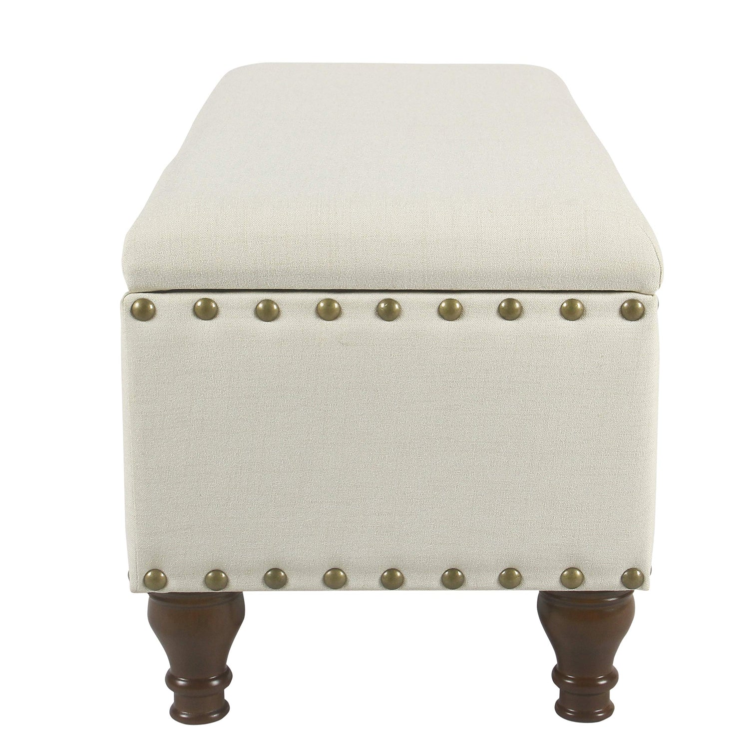 HomePop Large Storage Bench with Nailhead Trim - Cream