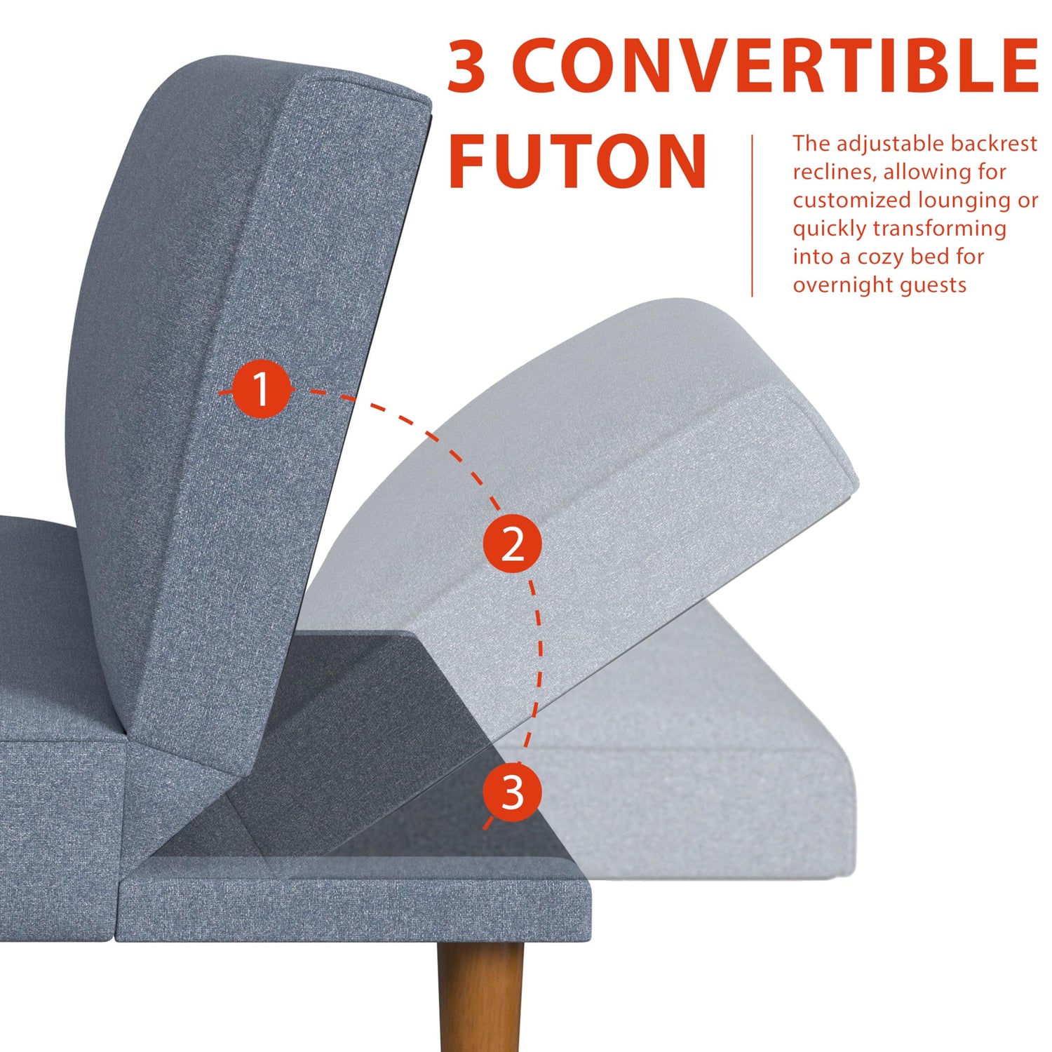 HomePop Upholstered Bergen Convertible Futon Sofa Bed, Modern Sofa Couches for Living Room, Small Spaces, Dorm, Apartment, Blue Woven