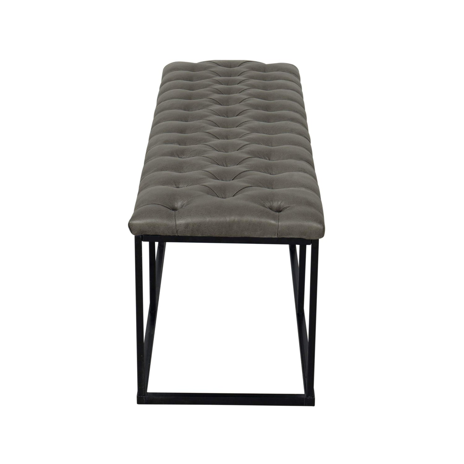 HomePop Upholstered Button Tufted Decorative Bench with Metal Base, Gray Faux Leather
