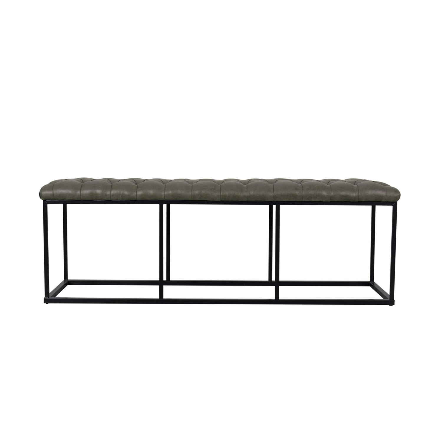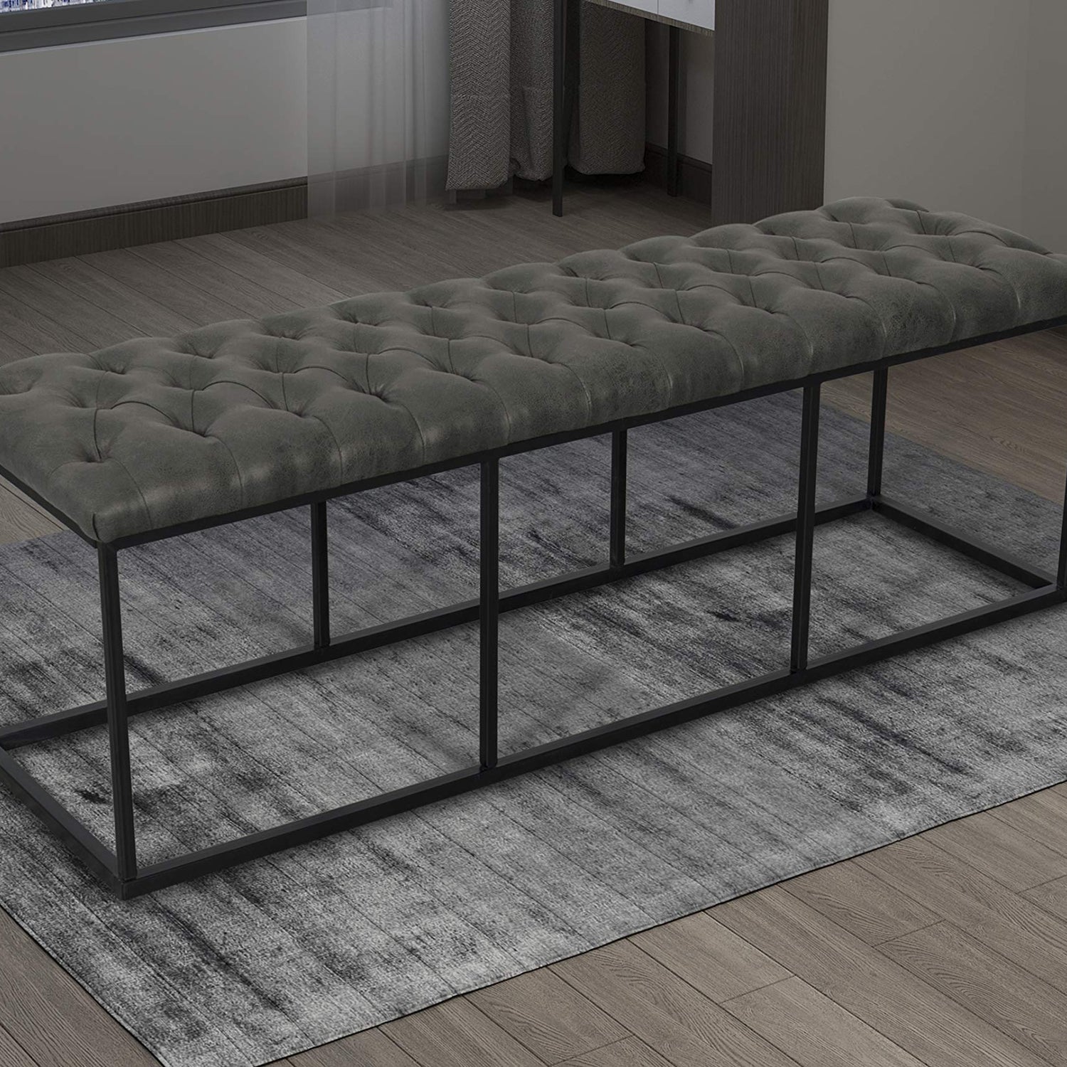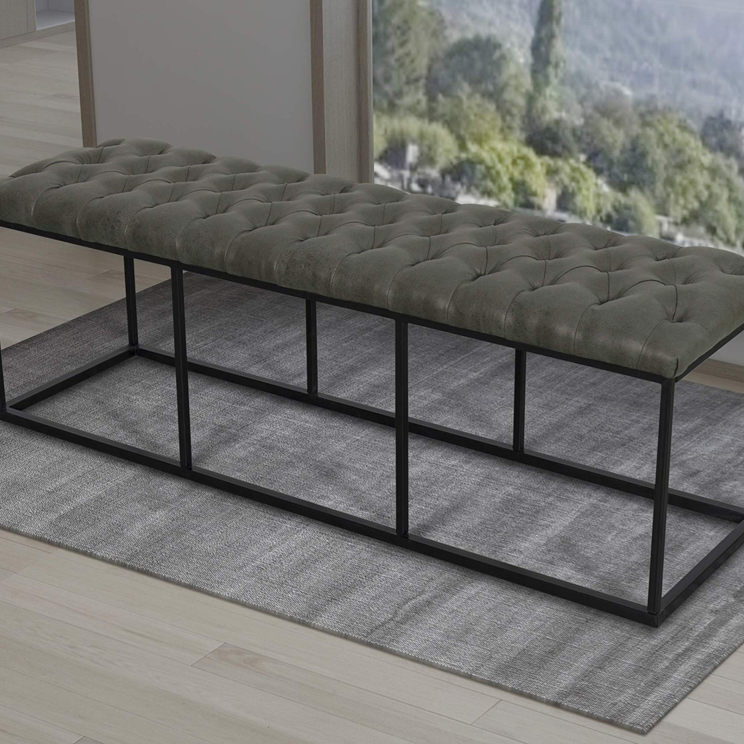 - OTTOMAN BENCH: Featuring a classic Gray Faux Leather tufted top contrasts well with the sleek black metal styling of the base | Our decorative industrial bench is often used as an coffee table ottoman or for extra seating and storage in your living room