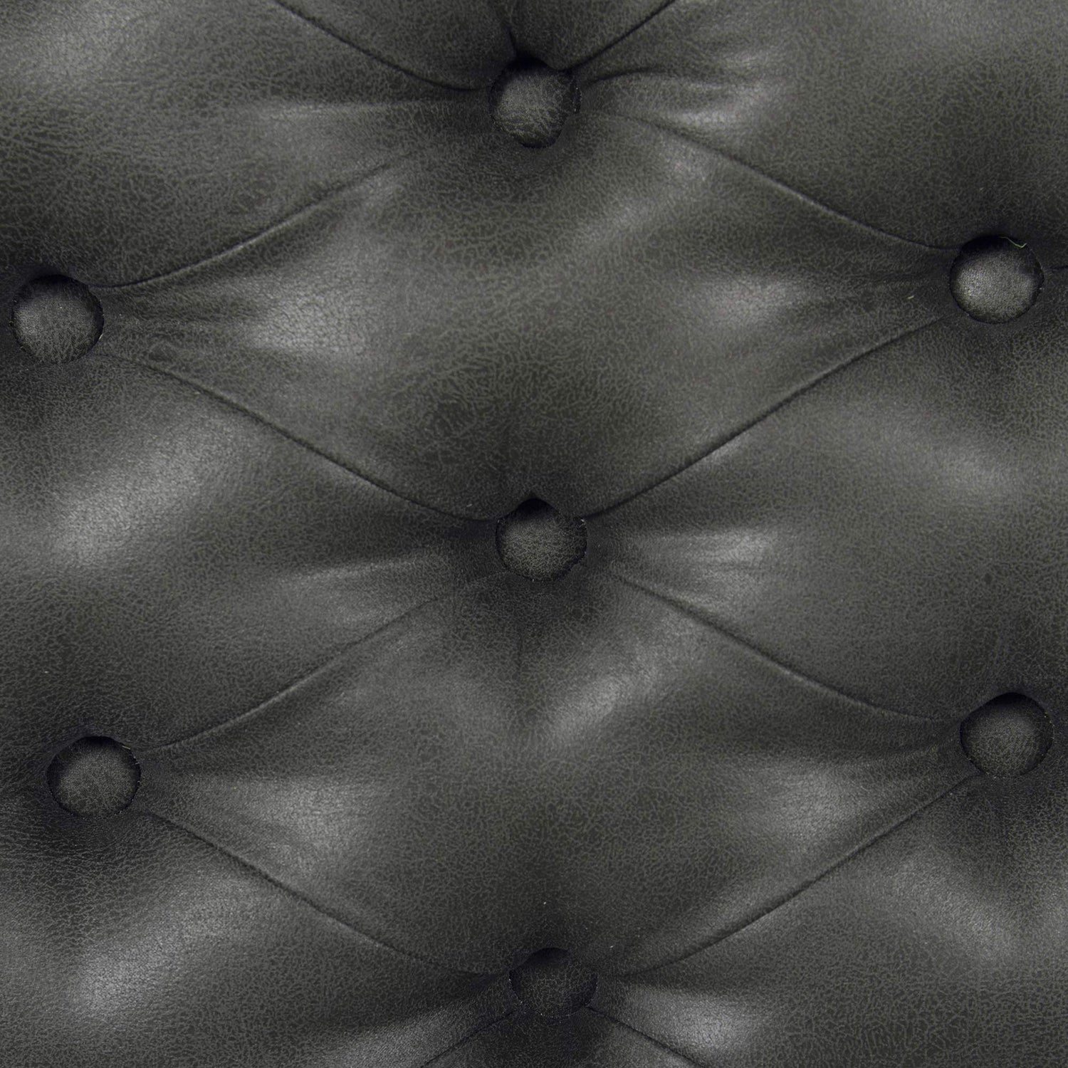 Details: The Draper Large Ottoman exudes masculine style and can perform multiple functions in any home. Use it as a coffee table ottoman in the living room, as an end of bed bench in the bedroom, or as extra seating in the dining room or family room. This 58" ottoman features an open metal frame that offers substantial size without overwhelming the space. The gray faux leather with button tufted top adds texture that contrasts well with the sleek black metal styling of the base. Easy to maintain with spot cleaning as needed.Please note that fabric and wood colors may appear slightly different due to variations in lighting or screen settings.