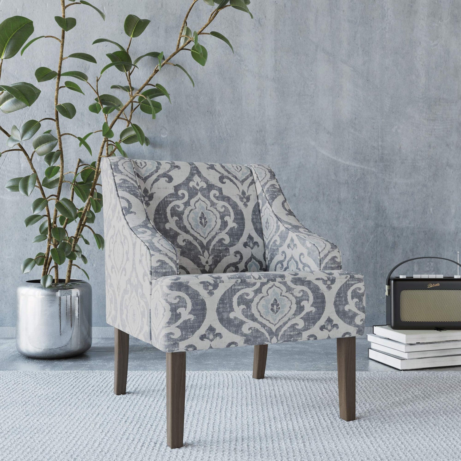 Details: We paired our best-selling Classic Swoop Accent Chair with our popular suri slate blue patterned fabric to create the perfect seating solution for any room of your home. Featuring a global-inspired damask pattern, our swoop chair’s subtle mix of grays and suri blue helps it work well with a range of design styles. Pair this intriguing accent chair with other neutrals or grays in the same space and allow it to be the speaking point of the room. Easy to assemble and maintain.