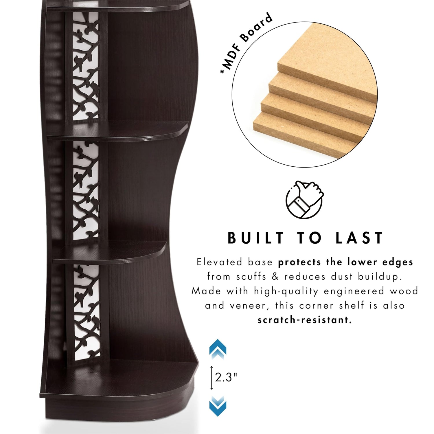 The anti-tip kit ensures safety, while the elevated base protects against scuffs, making this decorative bookshelf an excellent choice for homes or offices with modern or eclectic decor.