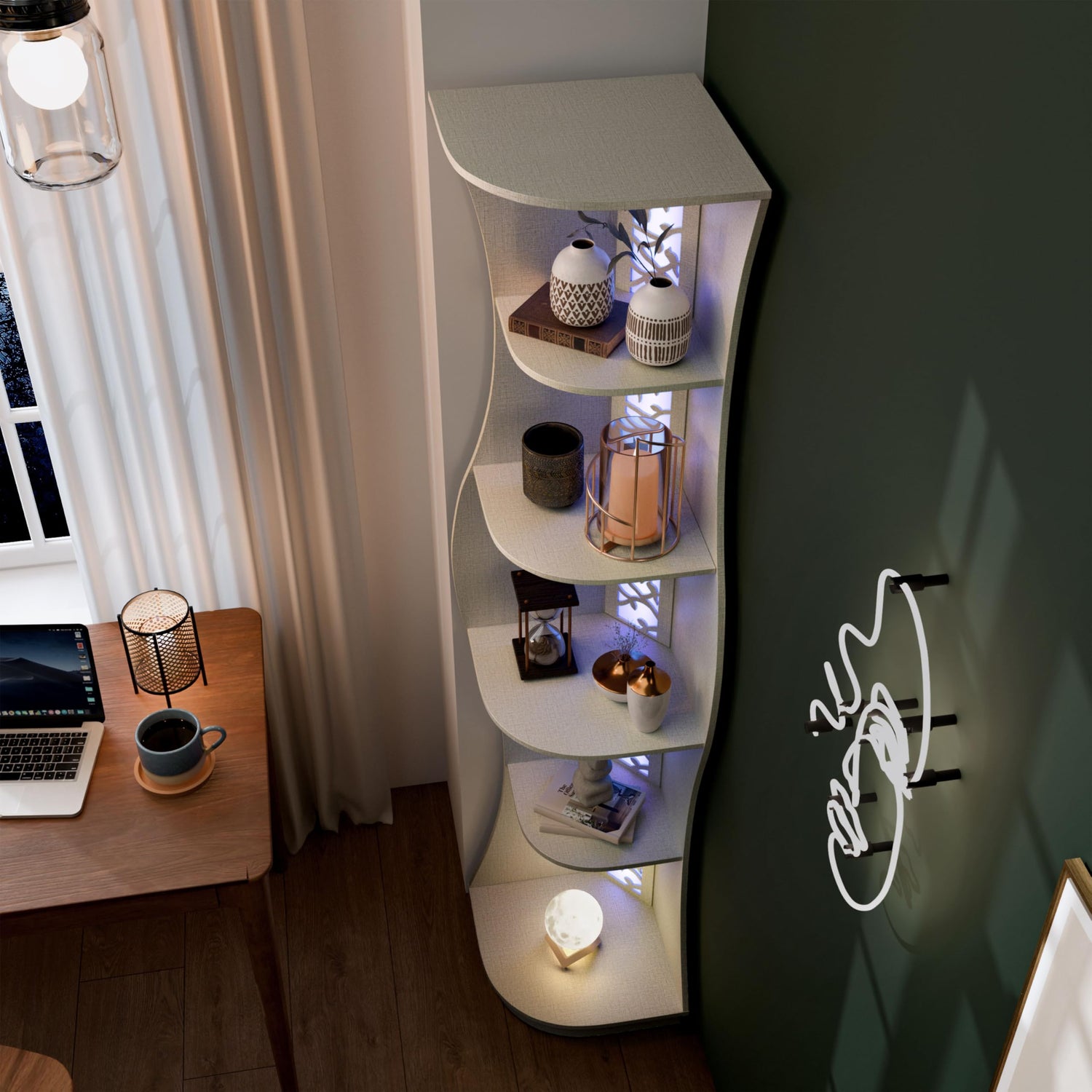 Ideal for compact spaces, this bookshelf with lights fits seamlessly into corners while providing ample storage for books, decor, or essentials.