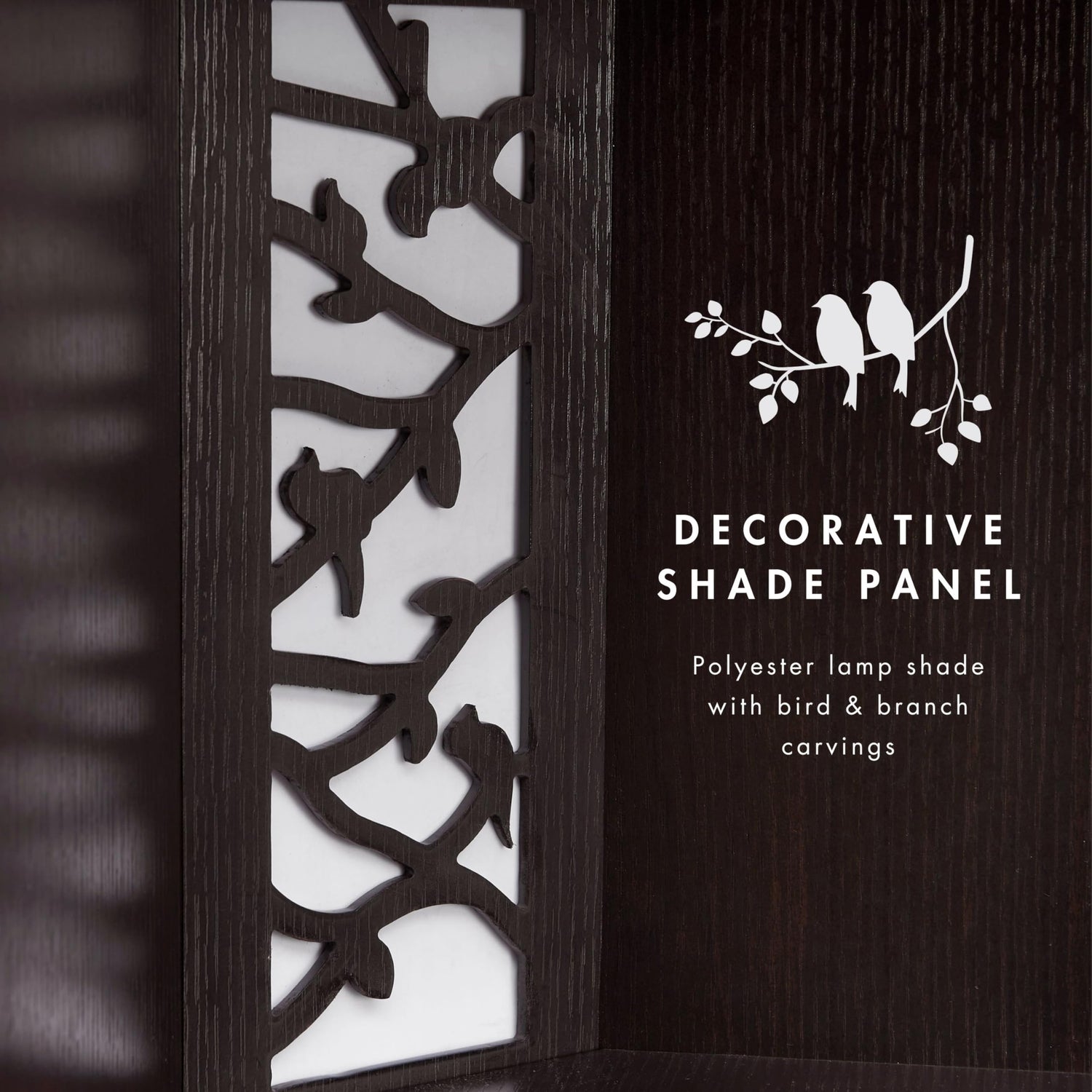 - 🕊️ORNATE SHADE DESIGN: Stamped wood shade cover and polyester lamp shade with intricate bird and branch details elevate its decorative appeal. Its special shape and corner-friendly design that adds character to any room.