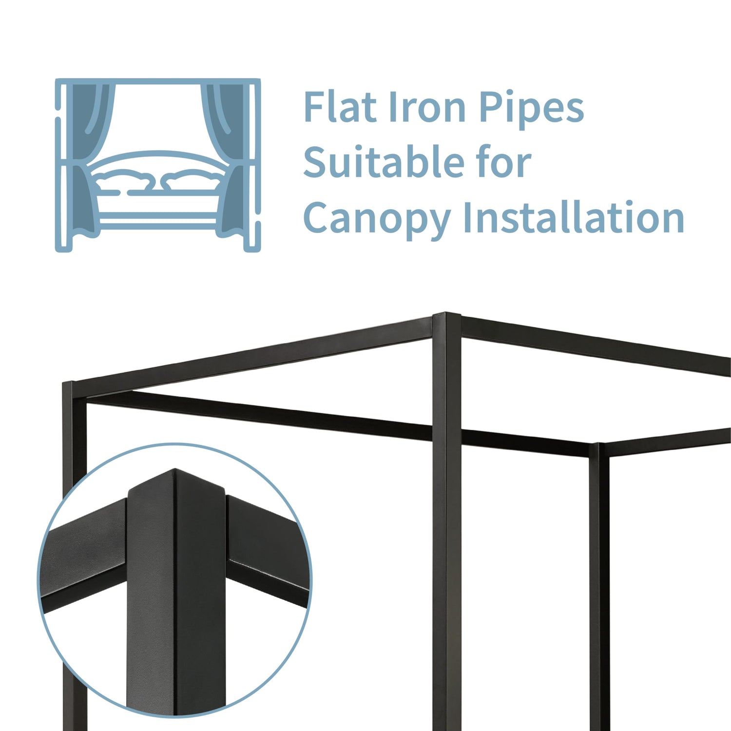 Introducing the Evadne Modern Canopy Bed Frame in Light Brown by HOMES: Inside + Out, a stunning addition to any bedroom that combines durability with elegance. This queen-size bed frame is expertly crafted from solid wood and metal, ensuring lasting stability and strength. The unique flat iron pipe design, tailored specifically for canopy structures, reinforces the bed's robustness, making it a reliable sanctuary for restful nights.