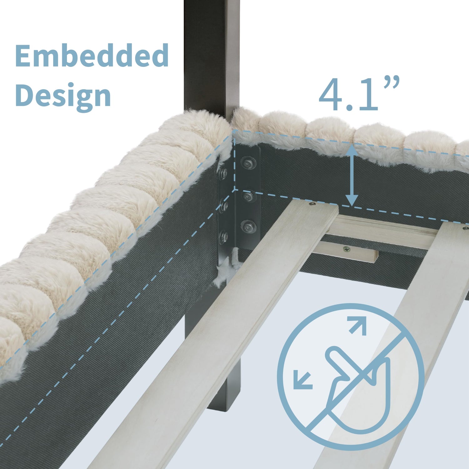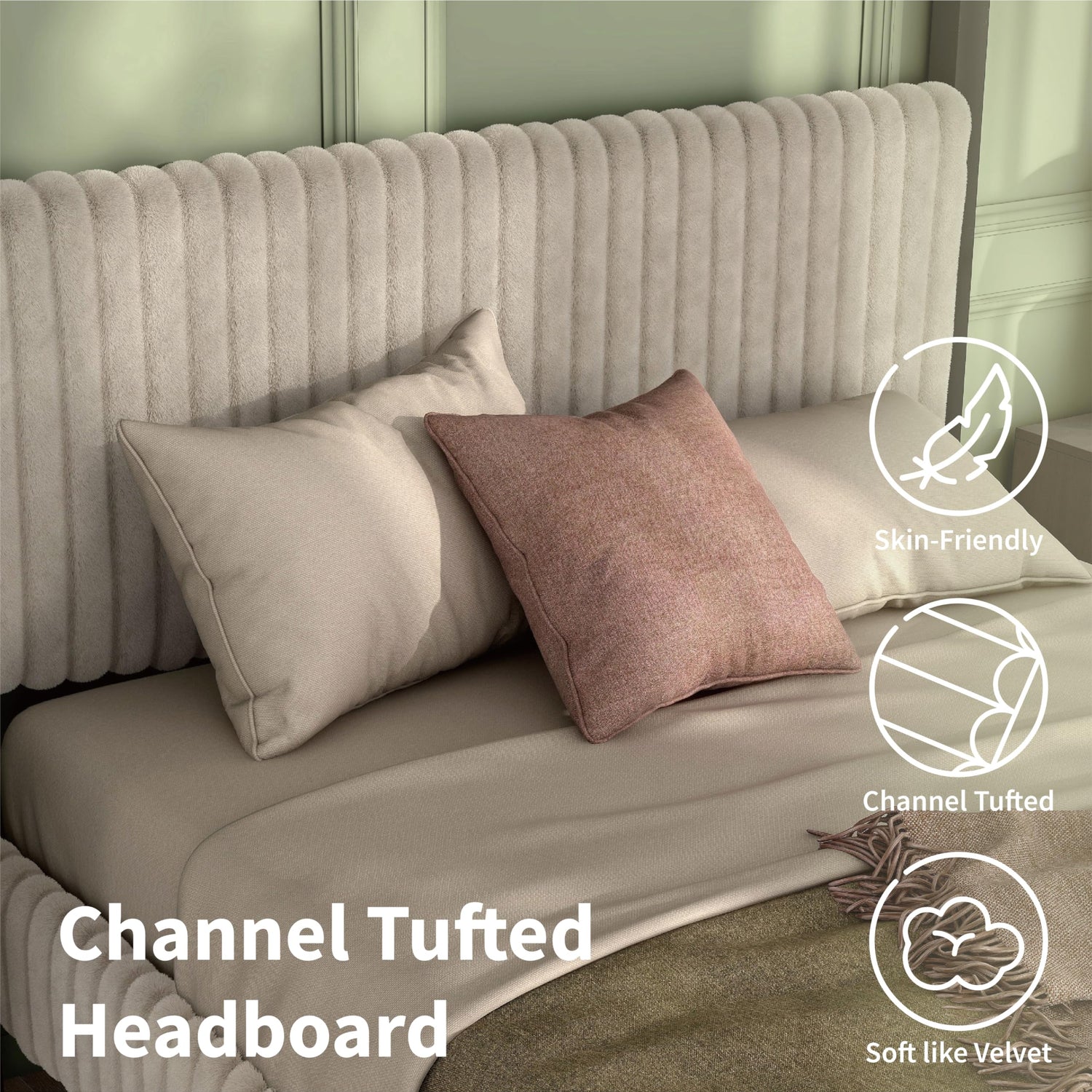Ultimate comfort is delivered through the channel tufted upholstery of the headboard, which is not only visually appealing but also offers a plush, inviting feel. The soft chenille fabric provides a cozy and skin-friendly surface that enhances your sleeping experience.