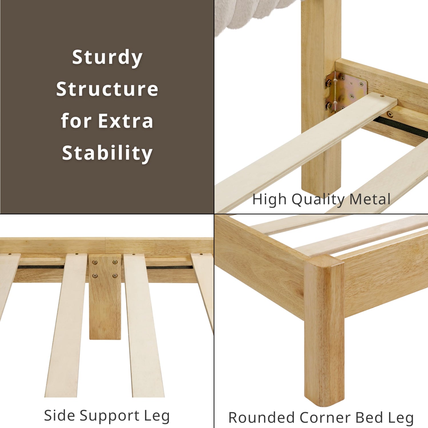 Crafted from robust rubberwood, this queen bed frame promises lasting durability, while the poplar wood slats provide a resilient foundation. An elegant touch is added with the unique texture of the plush chenille fabric that covers the vertical tufted headboard, enhancing both visual appeal and tactile comfort.